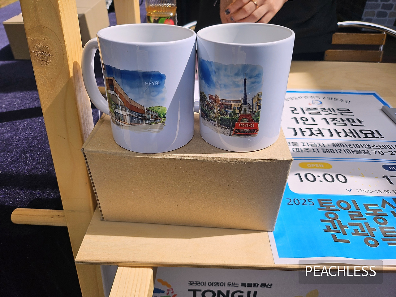 간단한 인적 사항을 기록한 뒤 머그컵 2개 세트가 담긴 상자를 하나 받을 수 있었다.