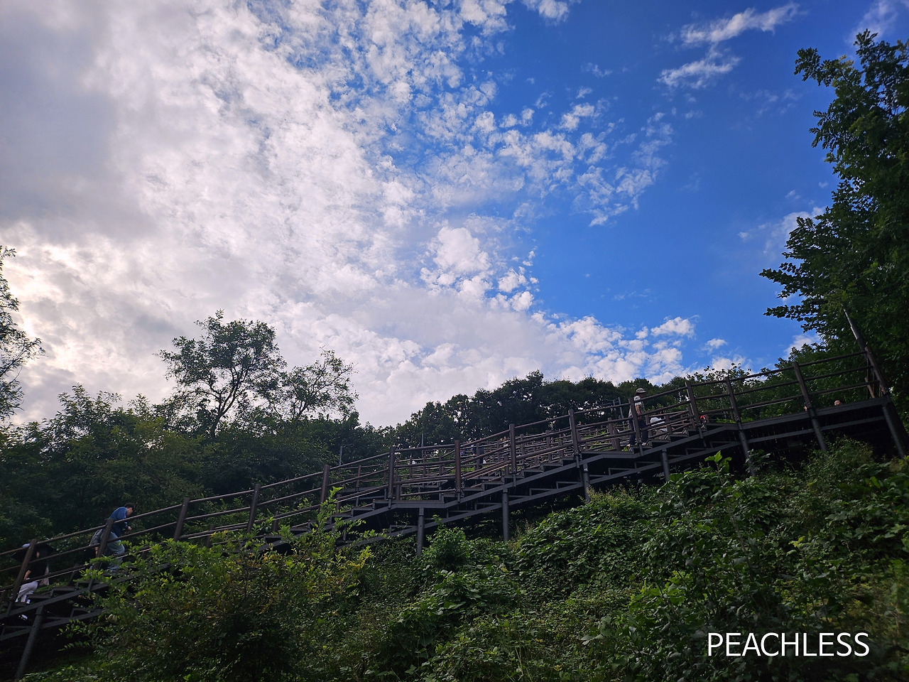 덕분에 방향을 살짝 헤매었는데, 우측에 있는 사진의 산 중턱, 다소 새카만 부분 - 저곳이 바로 계단이다.