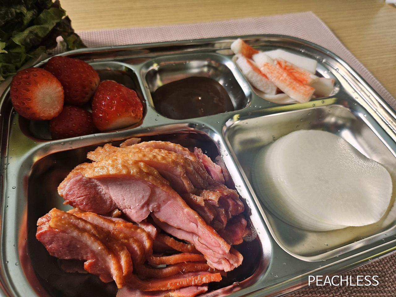 떨이 시간에 맞추어 시장에서 사왔던 딸기를 냉장고에서 꺼냈다.