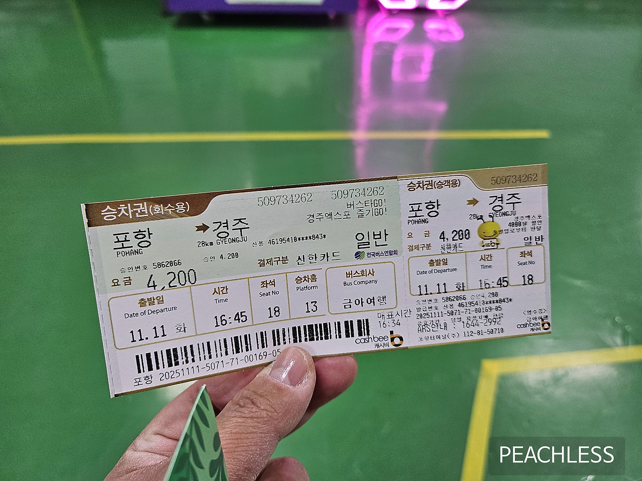 경주에서 포항 터미널까지 편도 4,200원.