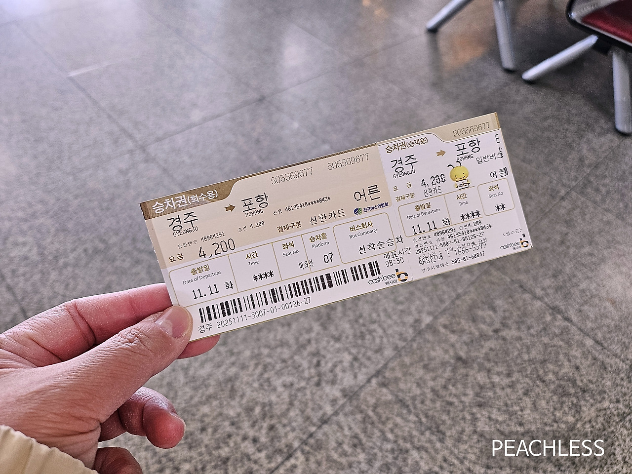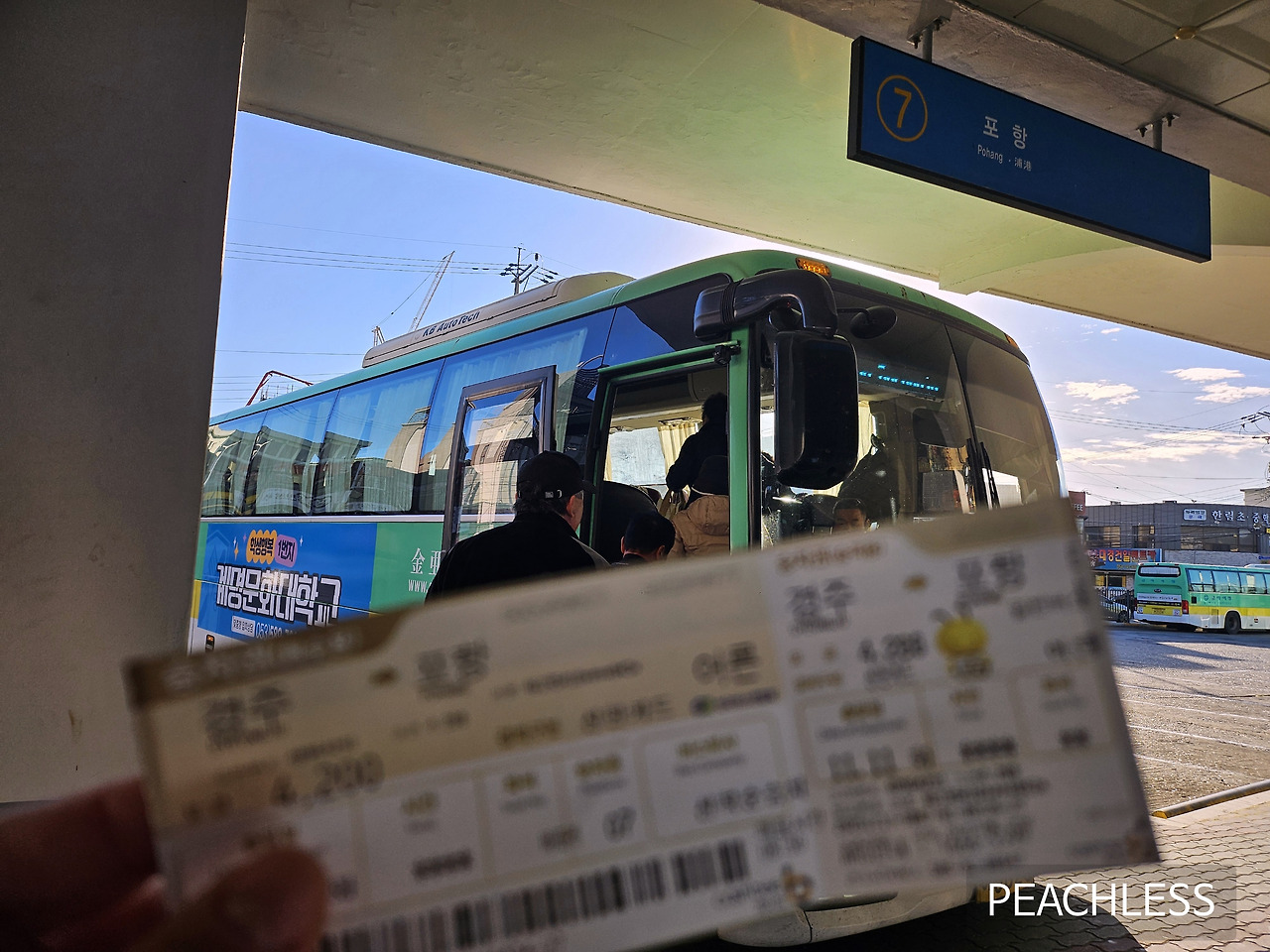 사장님께서는 손짓으로 근처 시외버스 터미널을 묘사하시며, 거기서 시외버스를 타고 포항에 내린 후 시내버스를 타고 가는 방법을 제안해 주셨다.