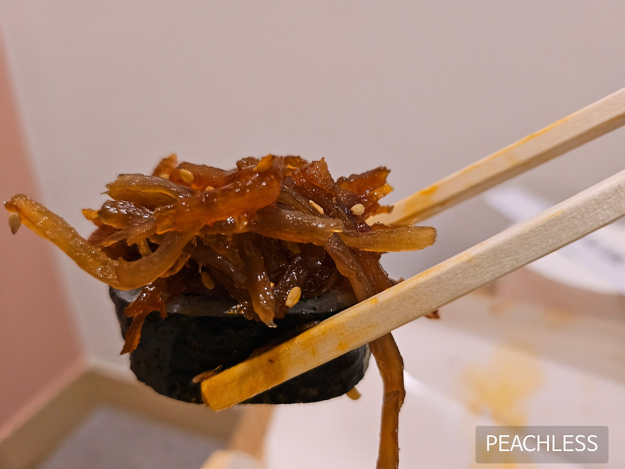 저녁 식사는 우엉이 올라간 김밥.