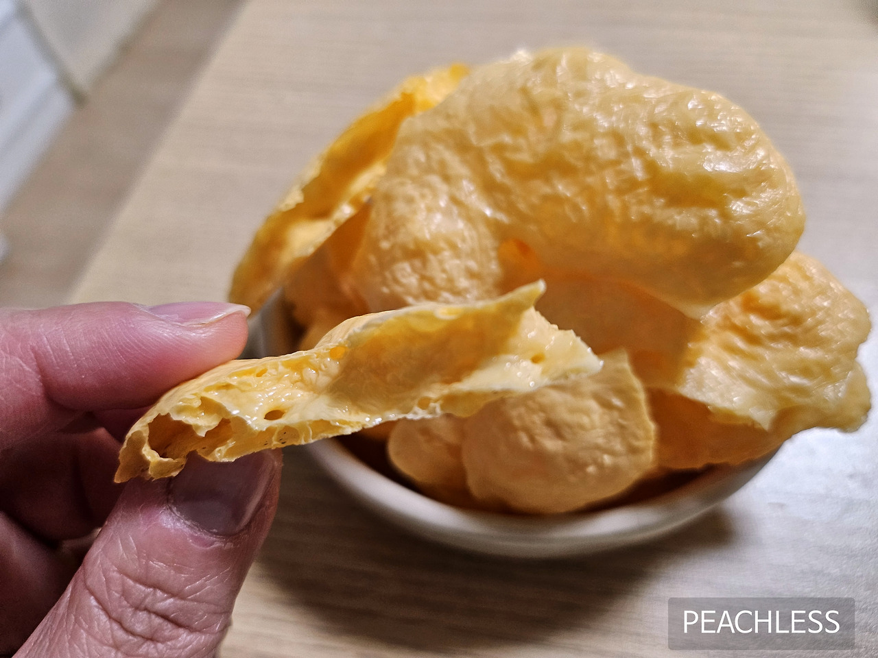 체다치즈를 전자레인지에 돌려 치즈칩을 만들어 먹었다.