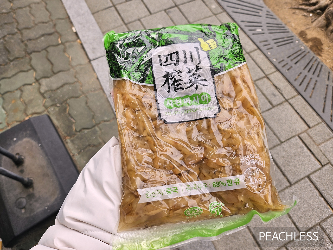 짧은 나들이를 마치고 집에 오는 길에 짜사이 한 팩을 샀다.