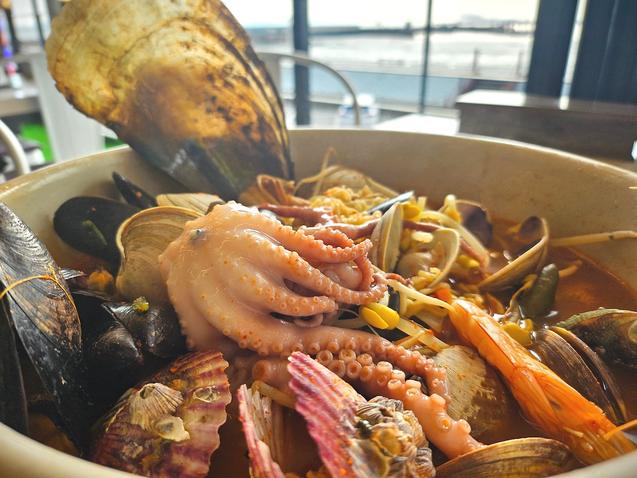 해산물이 많이 들어가 있다 해서 살짝 기대는 했으나 사이즈는 일반 라면 그릇, 혹은 냉면 그릇쯤에 나올 줄 알았다.
