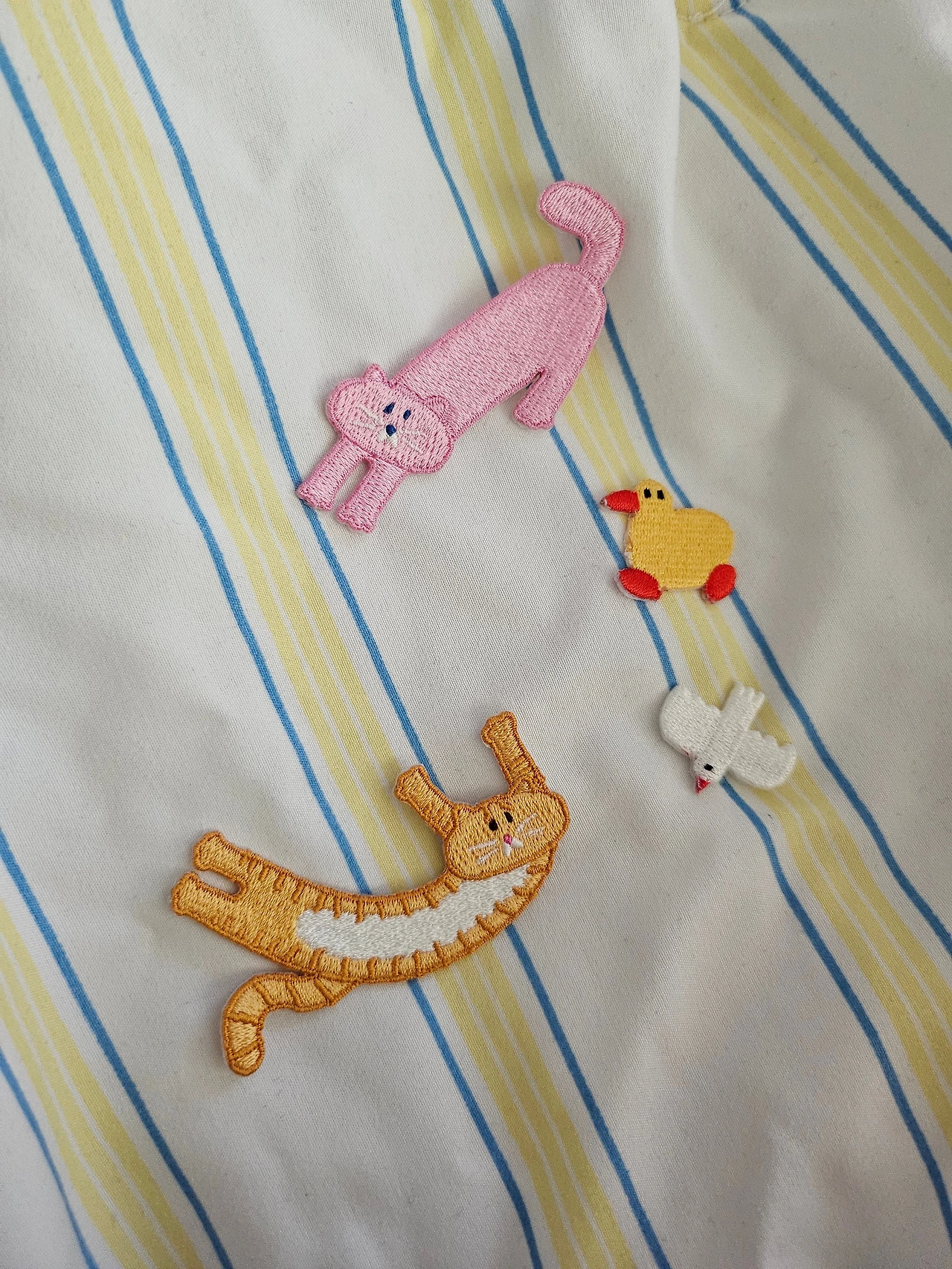 이 중 3개는 모자에 붙였고, 분홍 고양이 하나만 남았다.