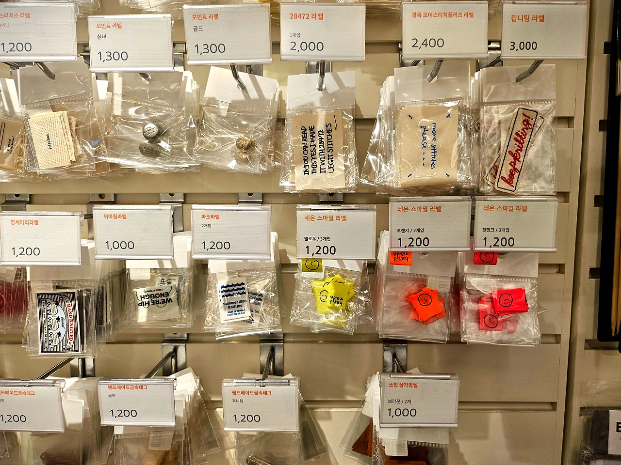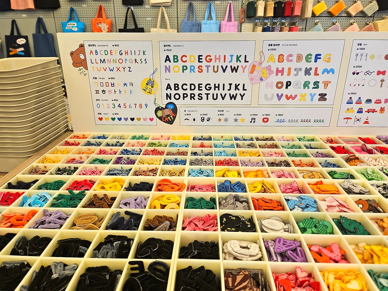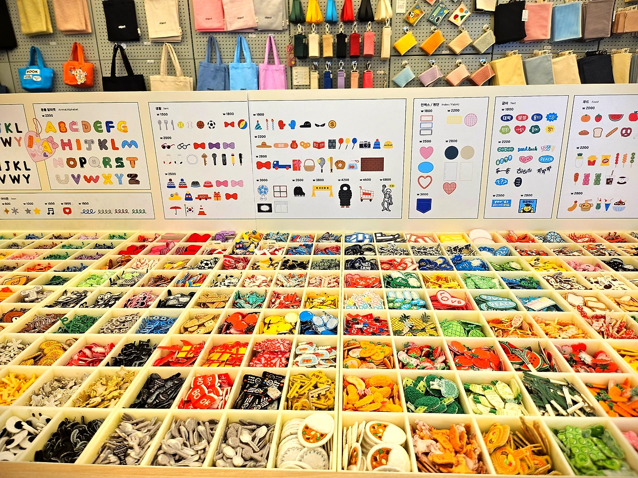 이곳은 가방, 키링, 장갑 등 다양한 소품을 먼저 고른 후 그 소품을 꾸밀 와펜들을 골라 함께 계산하면 된다.