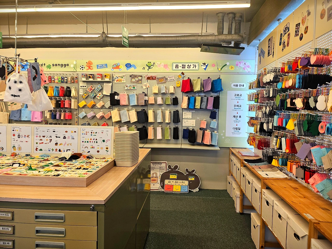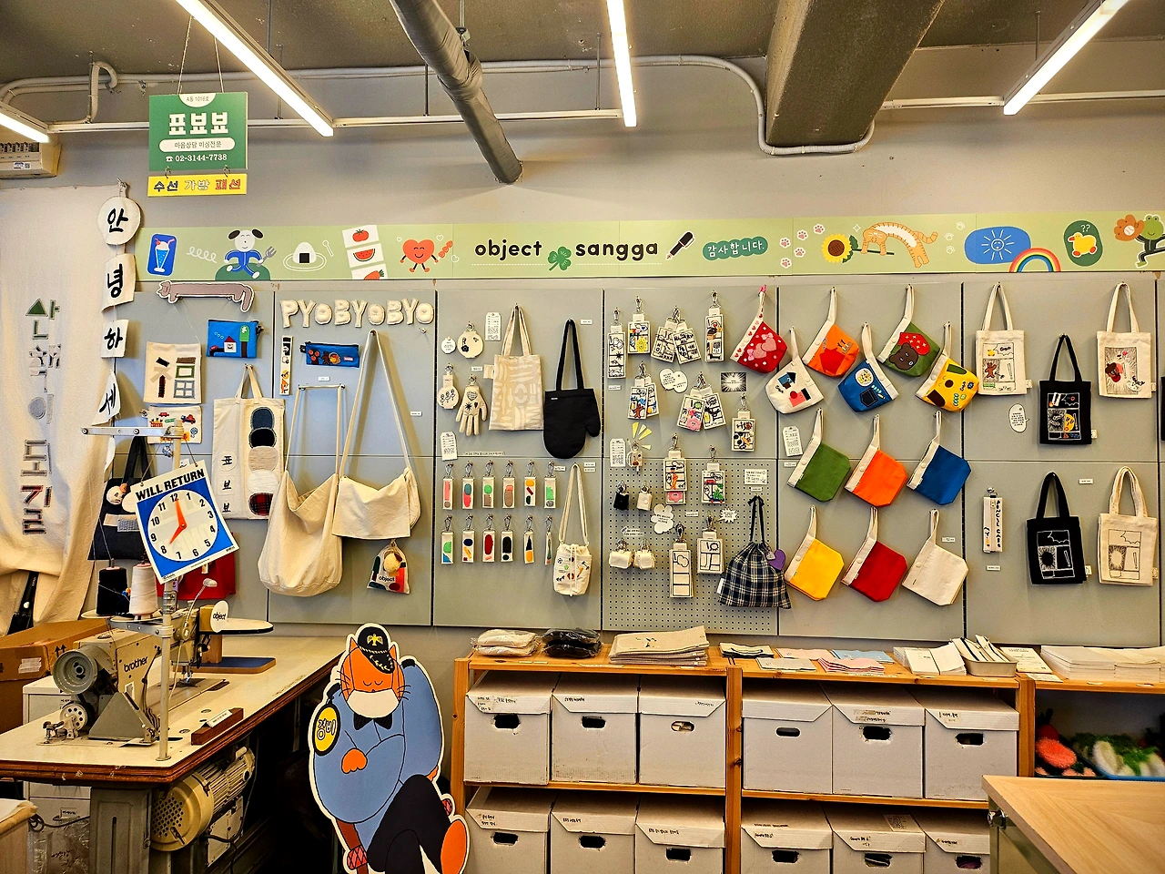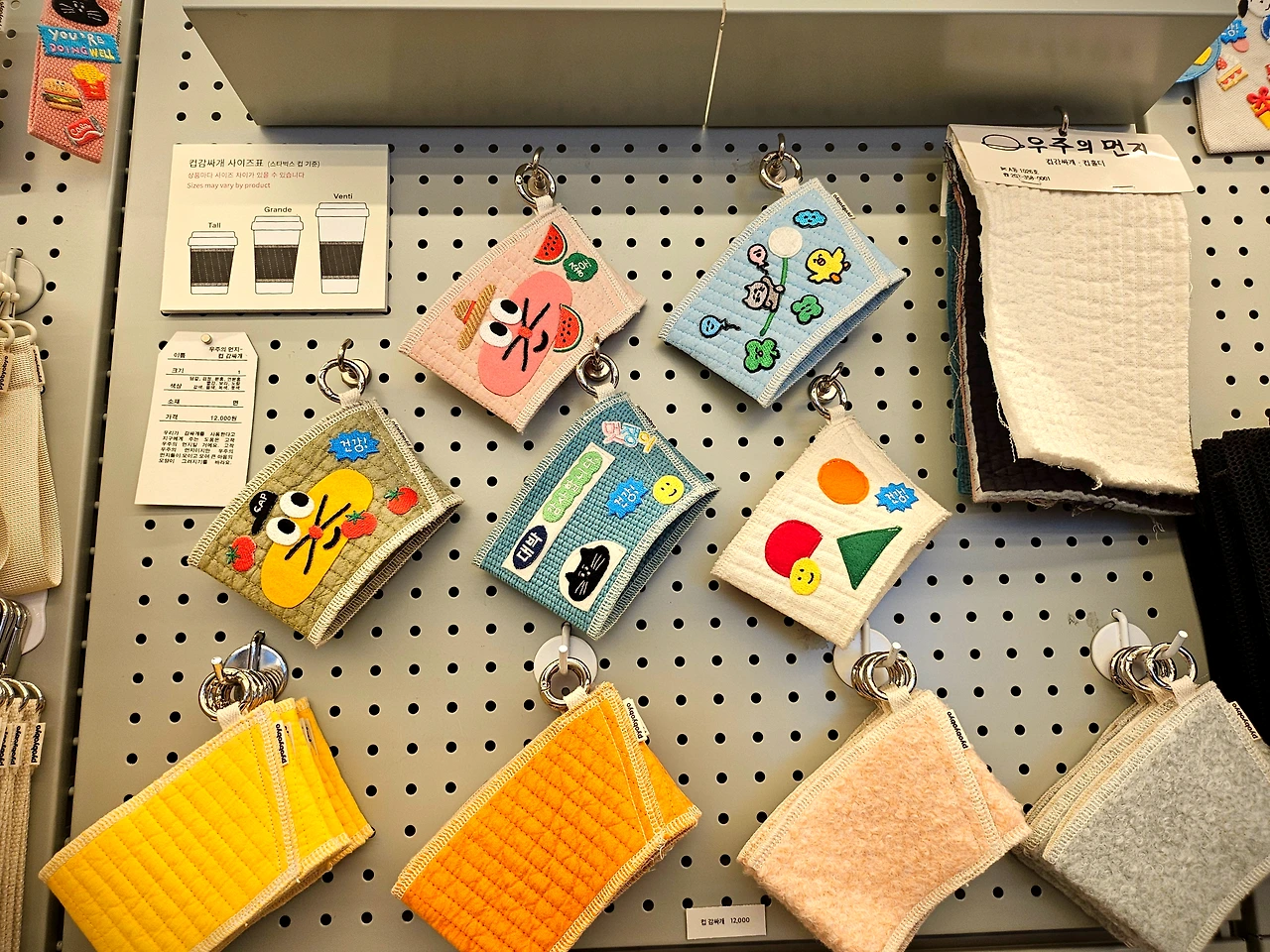 이곳은 가방, 키링, 장갑 등 다양한 소품을 먼저 고른 후 그 소품을 꾸밀 와펜들을 골라 함께 계산하면 된다.