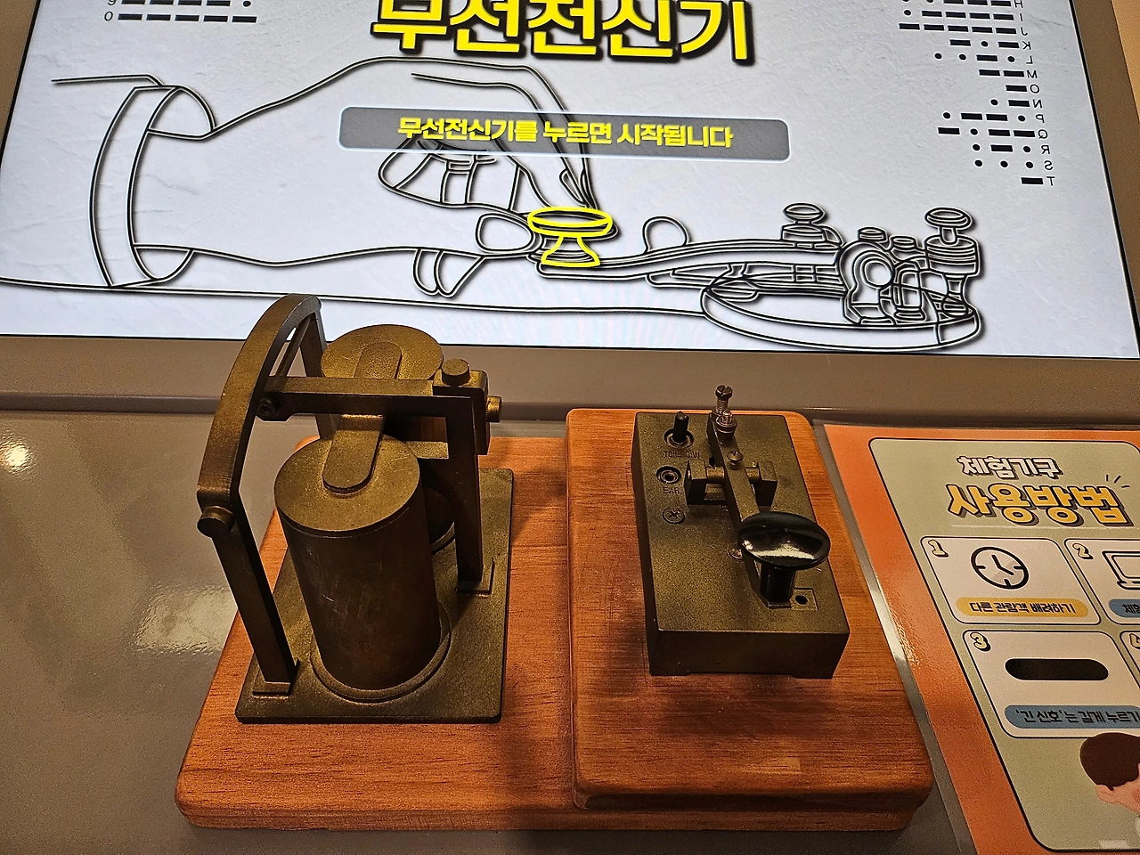 이것은 체험존으로서, 우측의 전신기를 똥똥 눌러 모스부호를 전송하는 것을 해볼 수 있다.