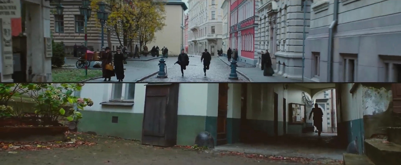 반면, 영화는 공간의 활용에 있어서 제약이 없다. 감독이 그려내고자 하는 모든 장면을 CG를 이용해서라도 보여줄 수 있다. 위에서 말했던 ‘당신을 기억합니다’ 신에서는 명성황후의 최후를 회상으로 넣었고, 도주 장면은 하얼빈의 거리를 뛰어다니는 방식으로 표현했다. 무대라는 한정된 공간을 이용하기 위해 고안한 빛나던 연출이 사라지니, 평범하고 평면적인 그림만 남았다. 그러자 숨겨졌던 단순한 스토리가 부각되고, 그저 애국심에 호소하기만 하는 ‘JK필름 식’ 영화가 탄생했다.