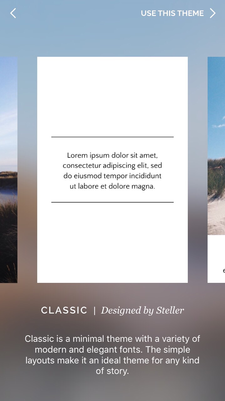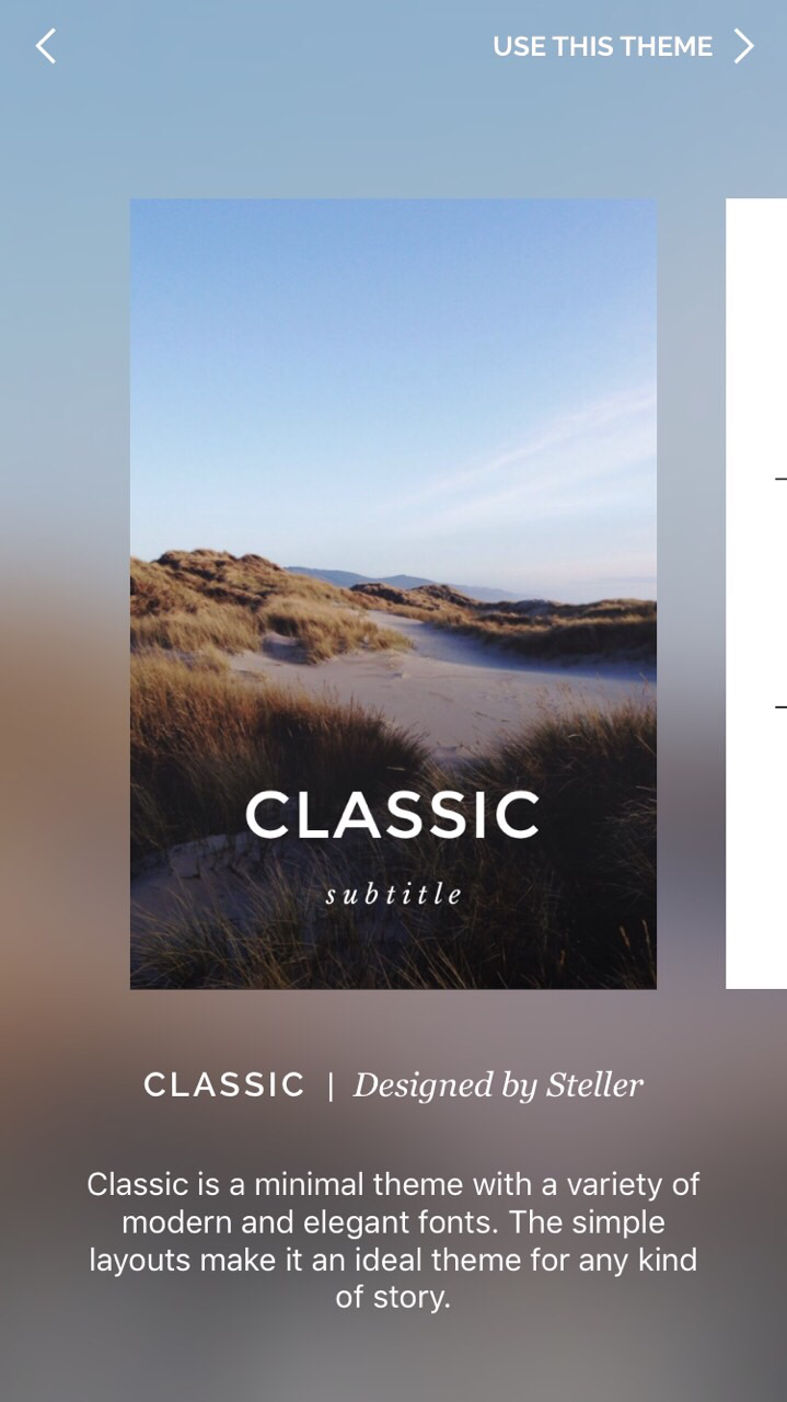 STELLER 는 '누구에게나 이야기할 스토리가 있다'는 모토로 모바일에 최적화되어 만들어진 서비스이다. 아직까지는 미국 앱스토어에서만 다운로드 가능하며 사진이나 영상 등 비주얼이 있는 글에 최적화되어 있다.