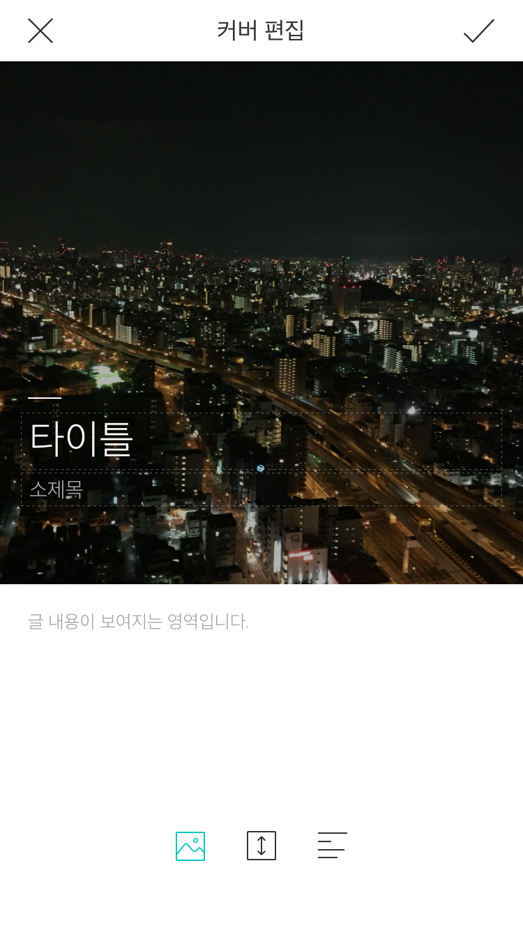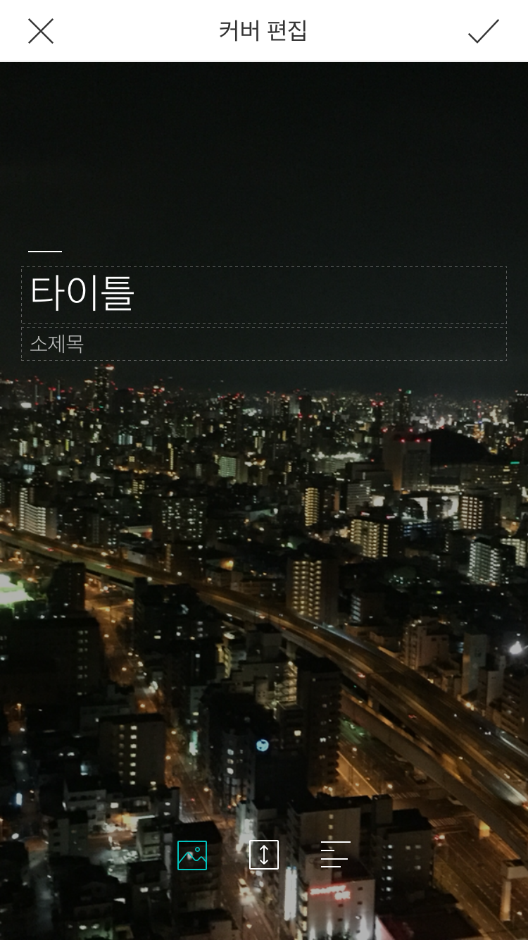 커버로 사용할 이미지의 유무 및 사이즈에 따라 한번의 터치만으로 정렬과 제목의 배치를 최적화 할 수 있도록 제공하고 있다.