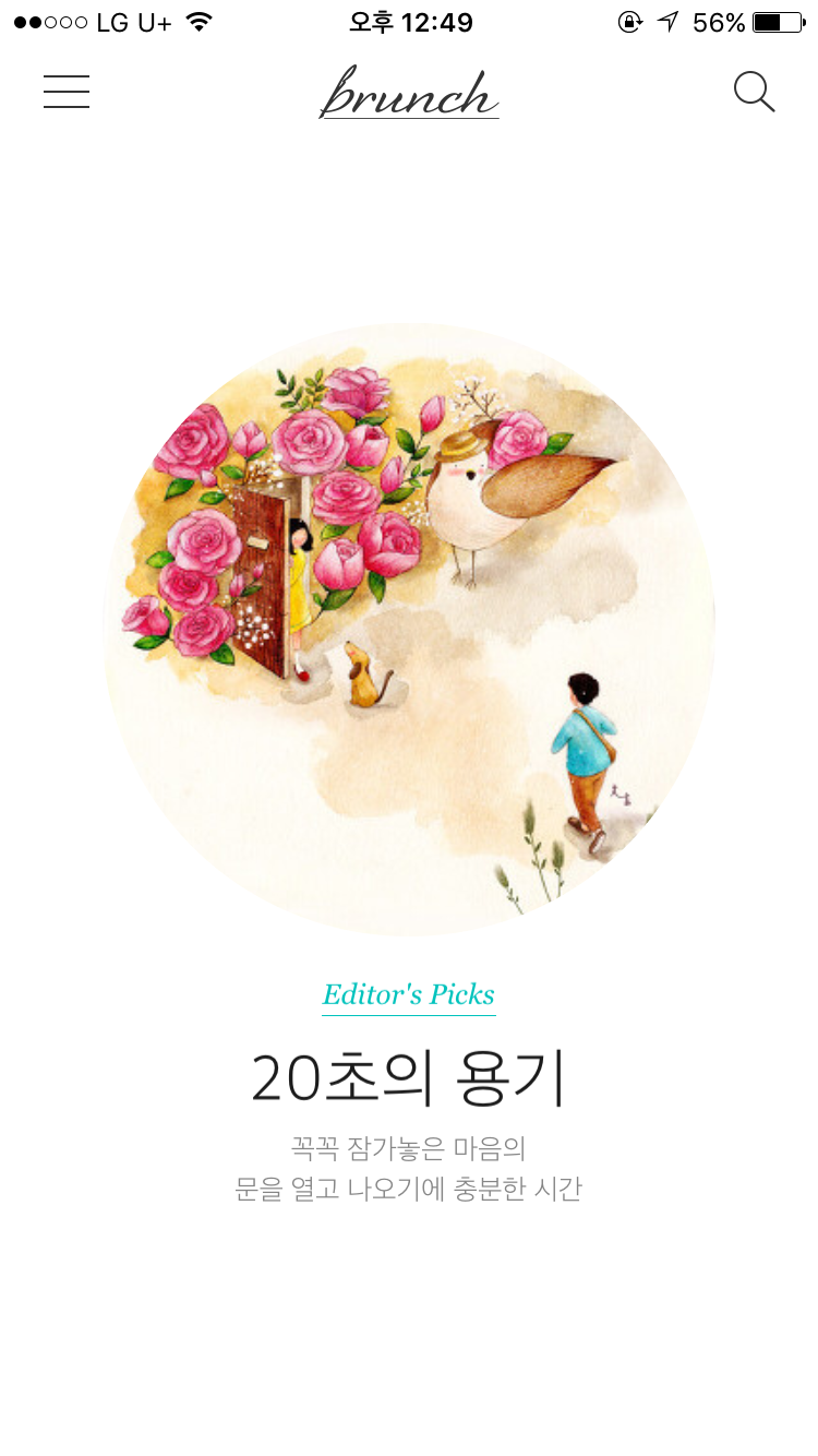 브런치는 첫화면에서 다양한 템플릿으로 추천글과 실시간 글을 제공한다. 일반적인 다른 서비스에서 사용자의 선택지를 다양하게 제공하기 위해 리스트형을 제공하는 경우가 많은데 비해 브런치는 글 하나하나에 집중하도록 커버 단위의 카드로 제공하고 있다.
