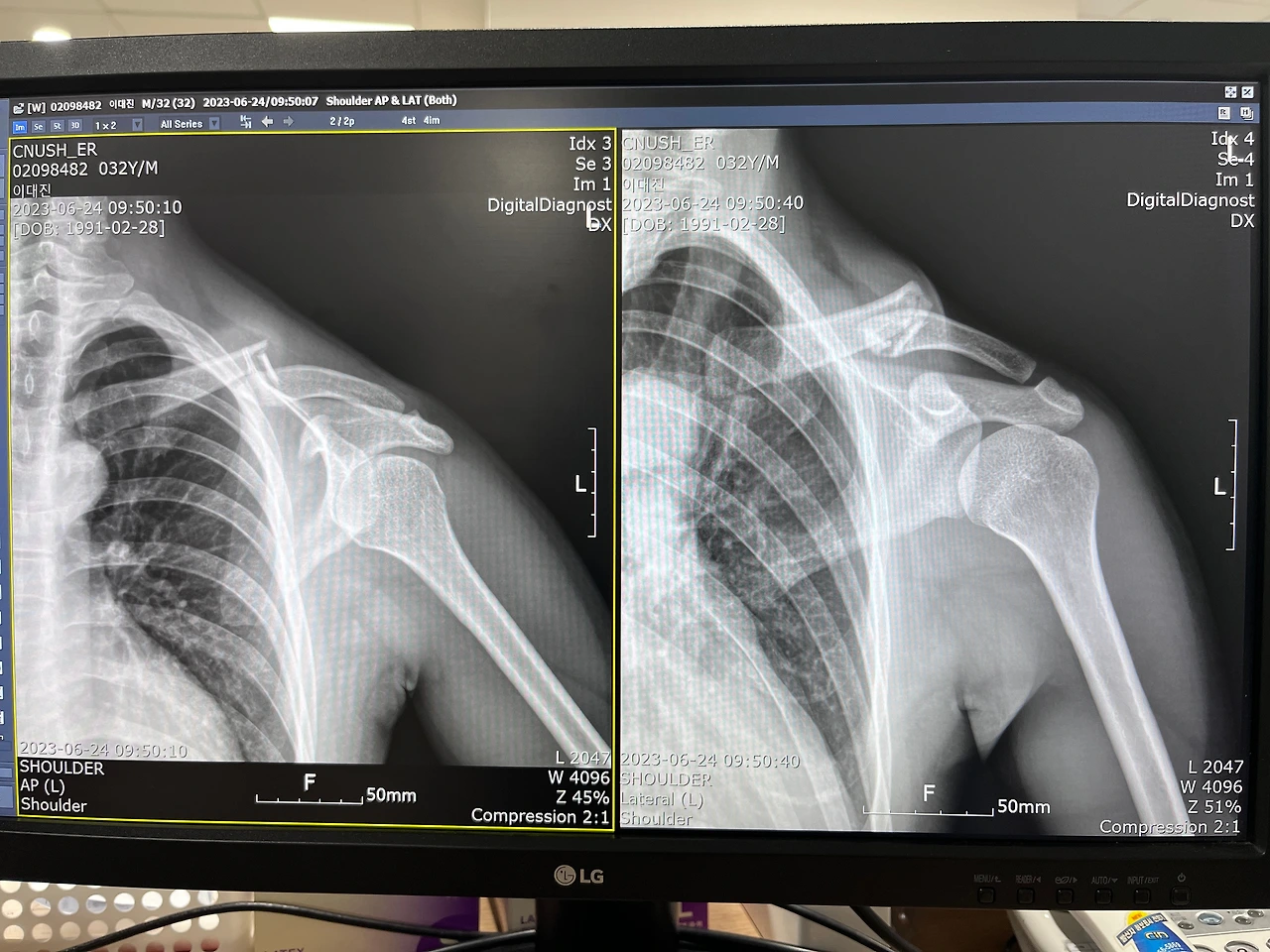 낙차 순간은 기억이 안 나는데 왼쪽으로 굴렀다는 것만 얼핏 스쳐 지나간다. 구급차에 실려 병원에 가서 사진을 찍어보니 골절이었다. 그제야 통증이 밀려든다.