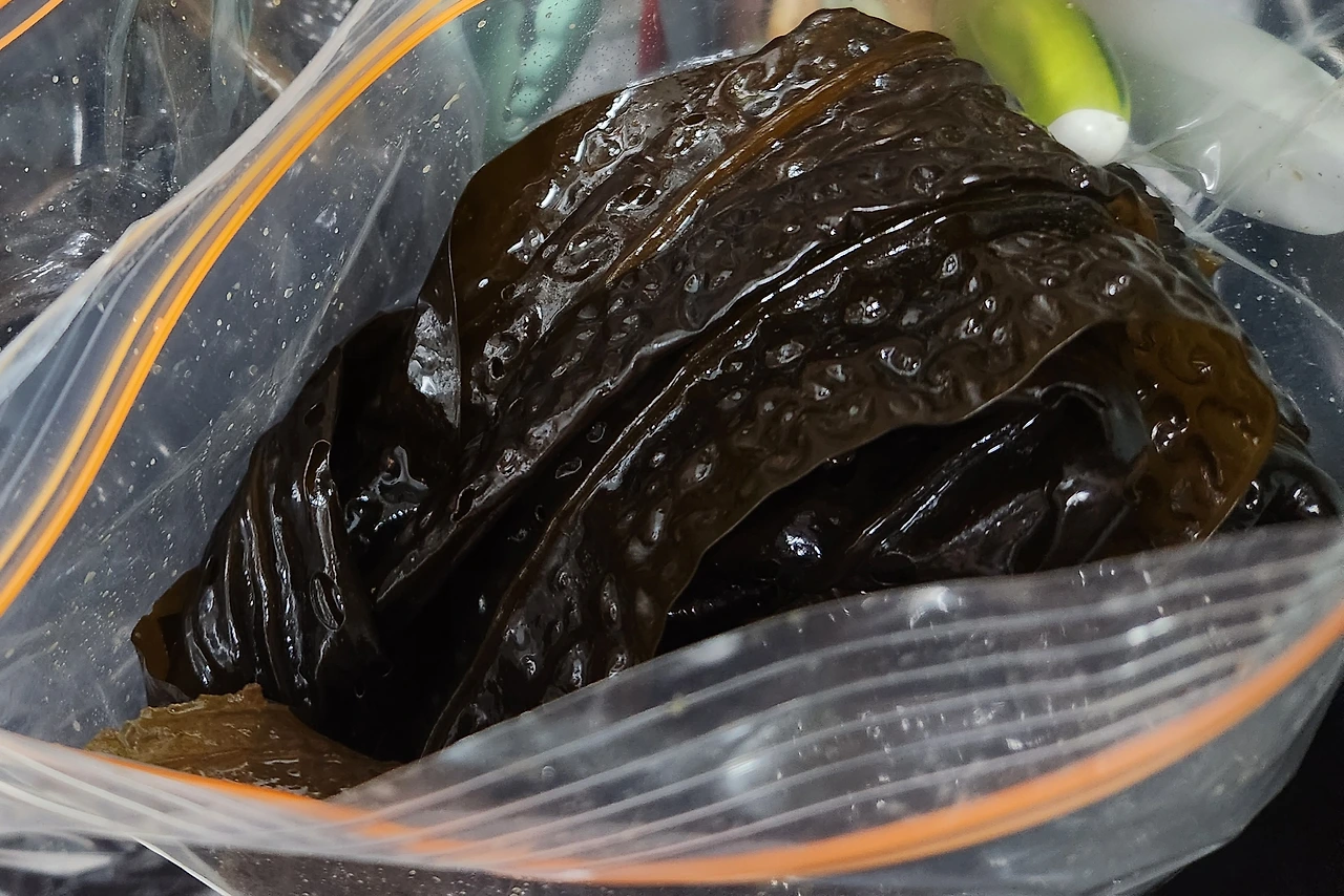 가장 커다란 지퍼백 4개를 가득 채우고도 넘치던 뻣뻣한 곰피미역들은 부들부들해져서 부피도 줄어들었고, 지퍼백 2개로 나눠 담는데도 자리가 여유롭게 남았다. 신난 나는 선생님 말이 맞았다며 샘 아니었으면 진짜 큰일 날 뻔했다고 하며 진심을 담은 고마움의 인사를 건넸다.