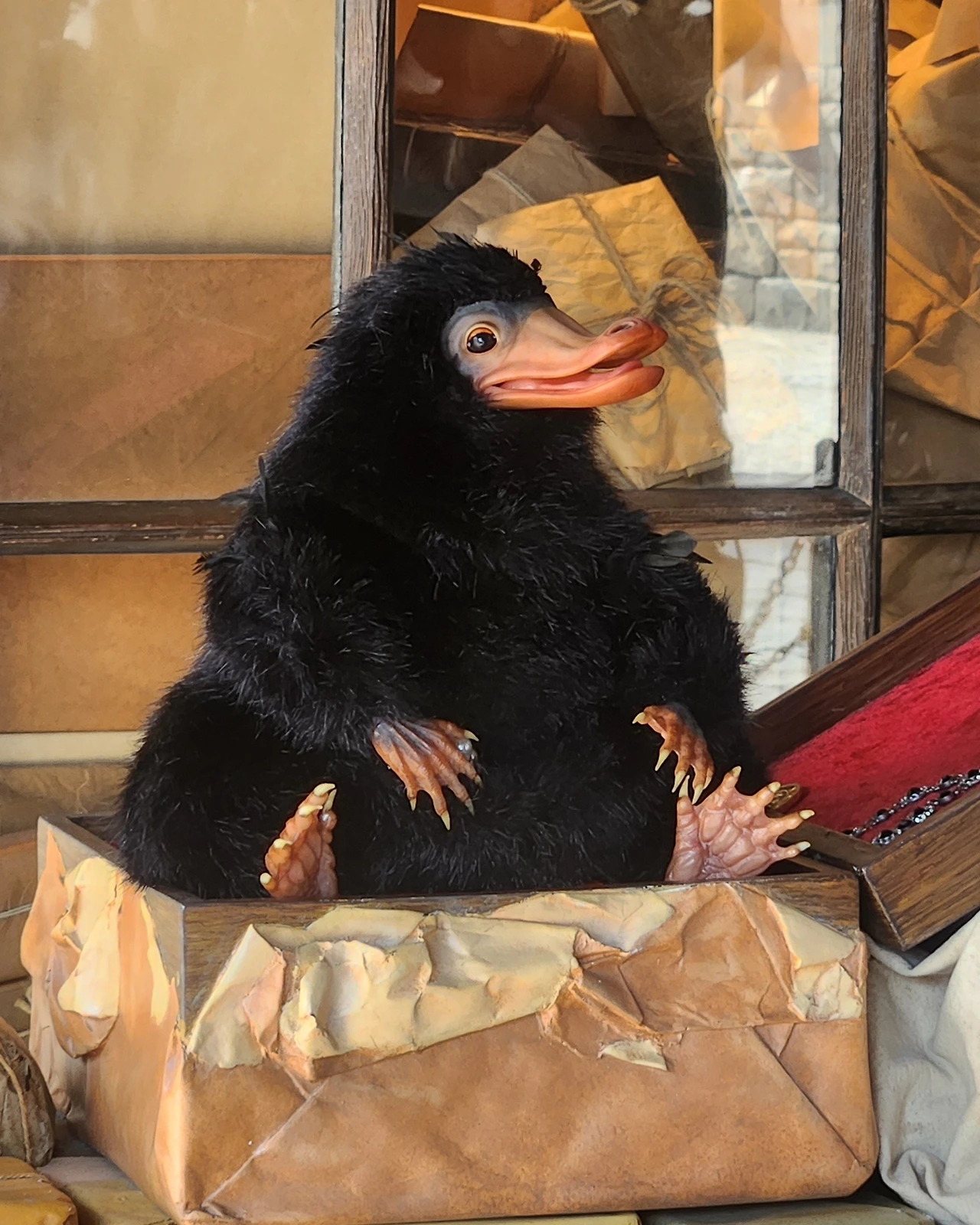 무엇보다 신비한 동물들의 수호자, 뉴트 스캐맨더와 함께 다니는 니플러를 만날 수 있었는데 소문대로 동전과 보석을 무척 좋아하는 녀석이었습니다. 뉴트를 직접 보았다면 보우트러클도 만날 수 있었을 텐데 그거 한 가지가 무척 아쉬웠어요.