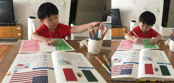 그렇게 종이에 나라 국기를 그리기 시작했고 하나씩 그려보면서 자연스럽게 외웠다. 나도 잘 모르는 긴 나라의 이름을 외우며 나에게 자랑을 하면 나는 크게 칭찬해줬다. 참 감사한 건 내가 "이렇게 해보자! 이거 해볼까? 이것도 해봐!" 이렇게 주도하지 않았는데도 자기가 관심을 갖고 궁금해하며, 알고 나면 스스로 만족해했다. 앎에 대한 즐거움이 있는 아이였다.