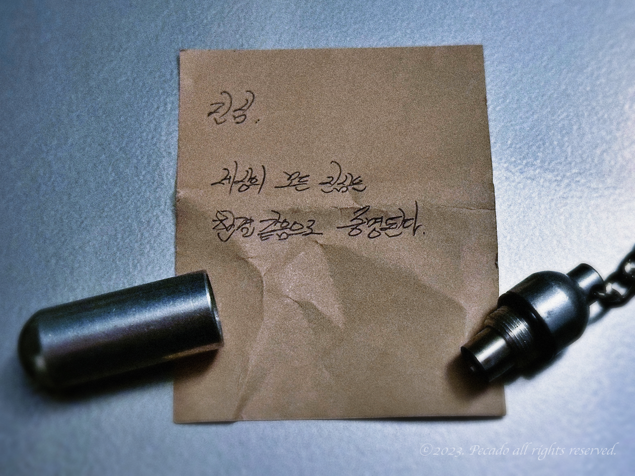 하루는 라이브 재즈 나잇을 즐기려고 그리핀 바를 찾았다. 오랜만에 뵙는 이경열 과장님과 반갑게 인사하며 악수를 나누는데, 과장님의 손을 통해 묵직한 총알 같은 것이 내 손에 쥐어졌다. 깜짝 놀라 손을 펴자, 내가 잃어버렸던 시가 펀치 커터가 포스트잇 메모지에 싸여있었다. 그 메모지에는 이렇게 적혀 있었다. '진심, 세상의 모든 진심은 한결같음으로 증명된다.' 나는 그 메모를 읽고 아무 말 없이 과장님과 눈을 맞춰 경의를 표했다.