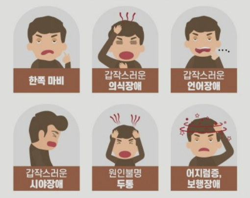 뇌졸중의 발생을 의심하게 하는 위험한 징후(전조증상)