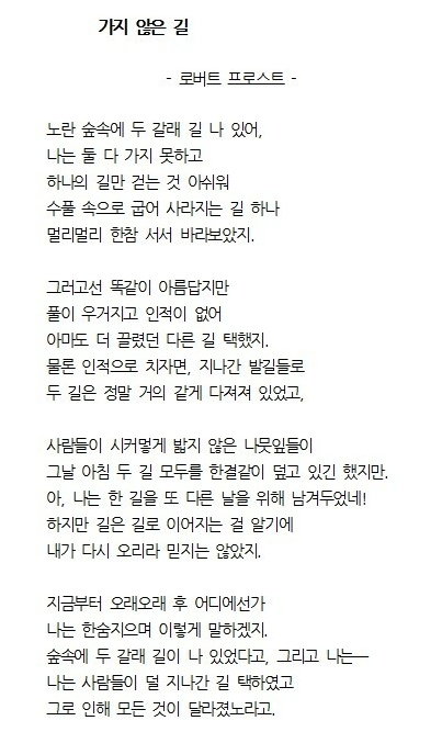 어쩌면 진로뿐만 아니라, 앞으로 마주하는 수많은 선택들 앞에서, 되새겨야 할 말일 것이다.