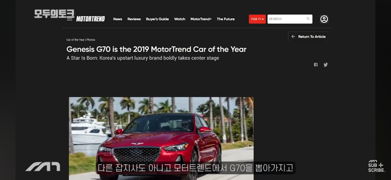 2019년, 모터트렌드 올해의 차로 G70이 선정된 것입니다.