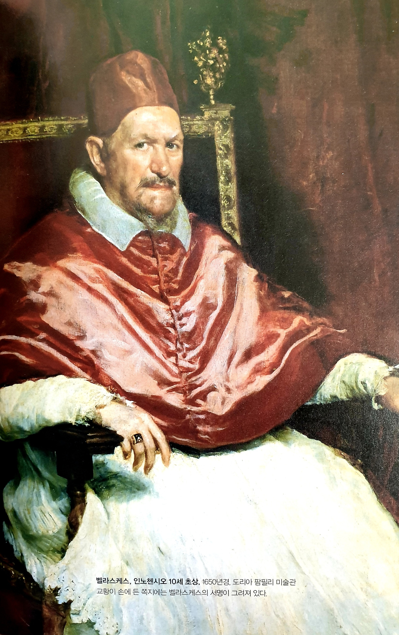 또 다른 걸작은 그를 수행했던 하인 파레하를 그린 그림과 당시의 교황 인노켄티우스 10세의 초상화인데, 먼저 1650년에 그려진 <후안 데 파레하>는 1970년 영국 크리스티 경매에서 역사상 최초로 100만 파운드가 넘는 금액으로 낙찰이 되었는데 231만파운드로 현재의 가치로 520억원이 넘는 금액이라고 합니다. 그리고 <교황 인노켄티우스 10세>는 역사상 가장 위대한 초상화 중 하나로 칭송받는 작품으로 그림이 완성된 후 초상화를 마주한 교황은 너무 생생하여 당황했다고 합니다. 교황은 이 생생함이 너무 부담스러워 외부에 공개하길 꺼렸고 19세기가 되어서야 대중에게 공개가 되었다고 합니다.