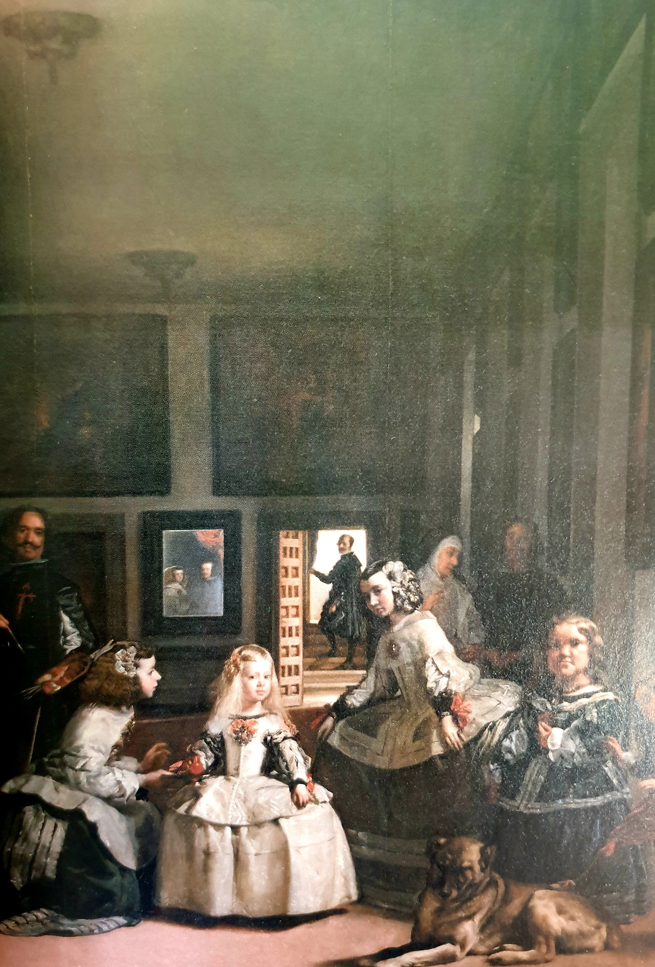 이 작품은 기법으로만 보더라도 이후 화가들에게 미친 영향이 대단하지만, 문화 전반에까지 큰 반향을 불러일으킨 요인은 다른 곳에 있다. 그건 화가와 모델, 화가와 관객의 관계를 완전히 다른 차원으로 비틀어버린 데 있다. 이 그림의 주인공은 궁정의 귀염둥이 마르가리타 공주와 시녀들로 보인다. 그런데 왼편으로 큰 캔버스의 뒷면이 보이고 그 앞에 위치한 화가가 보인다. 하지만 이 그림에는 커다란 반전이 숨어 있다. 저 뒤로 정면에 작은 거울이 있는데 그 거울에 두 사람의 모습이 비친다. 바로 왕과 왕비다. 한참을 생각하고 다시 정리하면 화가는 왕과 왕비를 그리고 있었던 것이다. 그리고 공주와 그 일행은 국왕 부부 초상화가 그려지는 현장을 찾아온 손님 들이었던 것이다. 그런데 이 장면을 그림으로 구현한 화가는 이 모두를 뒤집어 재구성을 한다. 관람객의 시점과 국왕 부부의 시점이 일치하고 이는 다시 화가의 시점과 일치한다. 놀라운 발상이자 새겨볼수록 참으로 절묘한 구성 이라 하지 않을 수 없다.