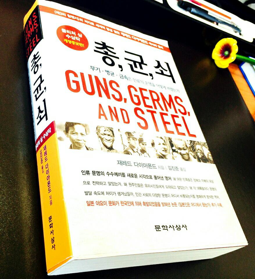 750페이지에 달하는 두꺼운 이 책은 처음의 걱정과는 달리 일맥으로 관통하는 주제의 흐름이 물흐르듯이 흘러서 생각보다 어렵지만은 않았을 것으로 생각합니다. 대부분의 사람들이 한번쯤은 의문을 품어봤을 법한 질문인 왜 인종, 민족마다 문명의 발달의 속도 차이가 그렇게 심한가라는 데 대한 문제해결을 저자는 탁월하게 풀어 나가고 있습니다.