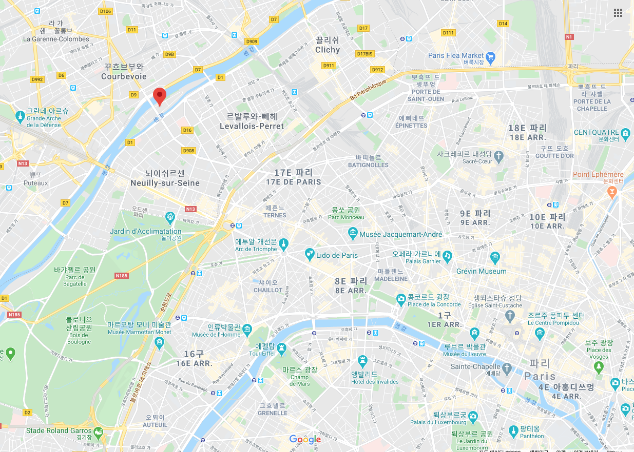 위치는 빨간 핀포인트를 찍은 곳입니다. 저는 유럽을 가본적이 없으니 파리에도 당연히 가보질 못했습니다. 하지만 지도에서 그 유명한 퐁피두센터나 바스티유광장, 루브르박물관, 개선문이 보입니다. 아들이 보는 why책에서 파리 도시의 모양이 가운데 광장을 중심으로 동심원처럼 패스츄리처럼 동그랗게 되어있다는 것을 알게 되었는데요. 만약 렌터카를 빌려 차로 이동한다면, 외곽순환도로 같은 것을 타고 가다가 17E지역에서 나들목에서 나가서 도착할수 있는 섬일듯합니다.