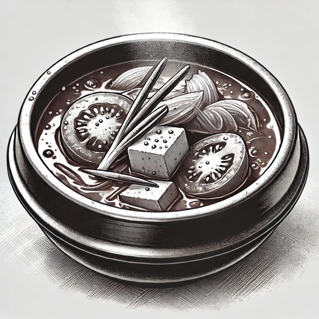찌개가 점점 끓어오르며 토마토의 상큼한 향이 퍼지기 시작했다.