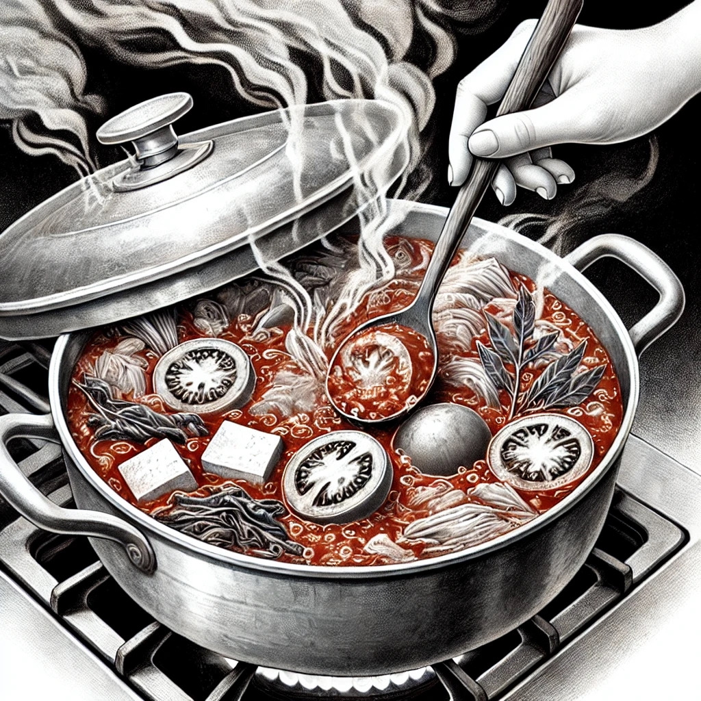 찌개가 보글보글 끓어오르며 완성되었다. 그는 불을 끄고 냄비 뚜껑을 조심스레 열었다. 김치찌개의 진한 향과 토마토의 상큼한 향이 어우러져 코끝을 자극했다. 생각보다 훨씬 독특한 조합이었다.