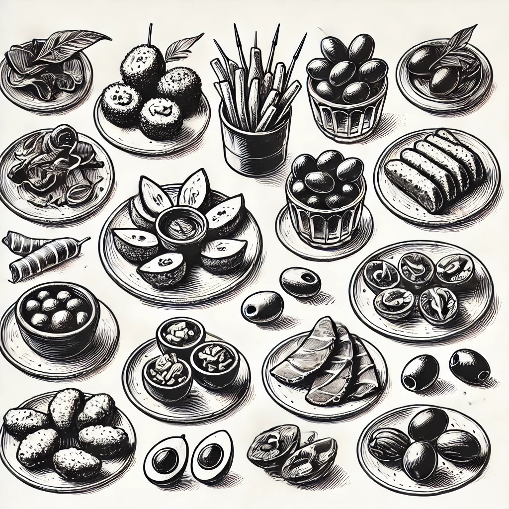 [타파스 - 스페인에서 술과 함께 즐기는 작은 접시에 나오는 음식을 말한다. 친구들과 대화를 나누며 함께 즐기기 좋은 타파스는 스페인 문화의 중요한 일부분으로, 각기 다른 재료와 조리법이 어우러진 여러 가지 맛을 경험할 수 있다. 타파스는 여러 맛의 조합을 찾는 즐거움과 새로운 맛을 탐험하는 기쁨을 선사한다.]