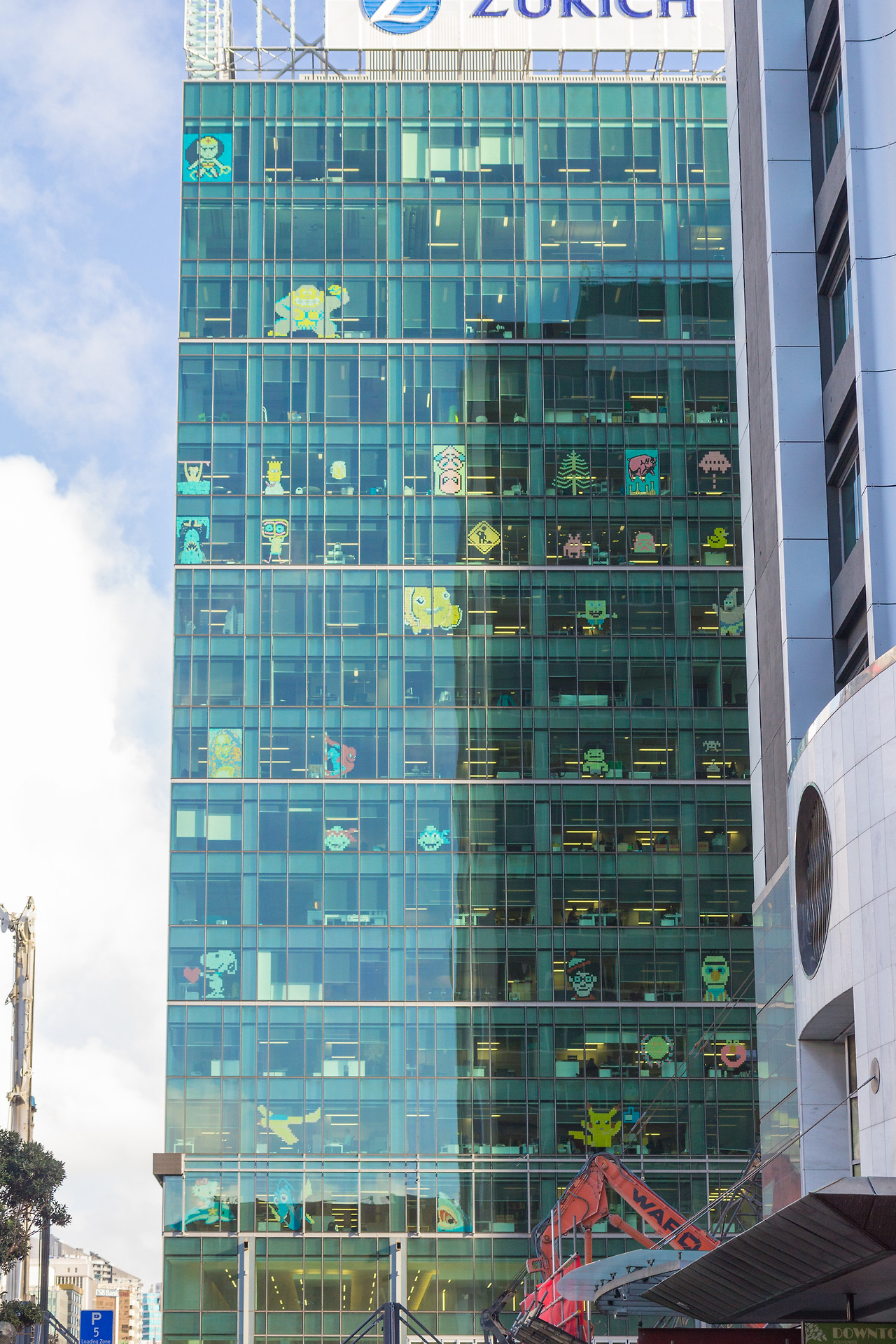 뉴욕의 오피스들 윈도우에 비쳐 보이는 포스트잇 픽셀 아트 관련기사를 통해 처음 접했었는데, 오클랜드에서 직접 처음으로 보았다.