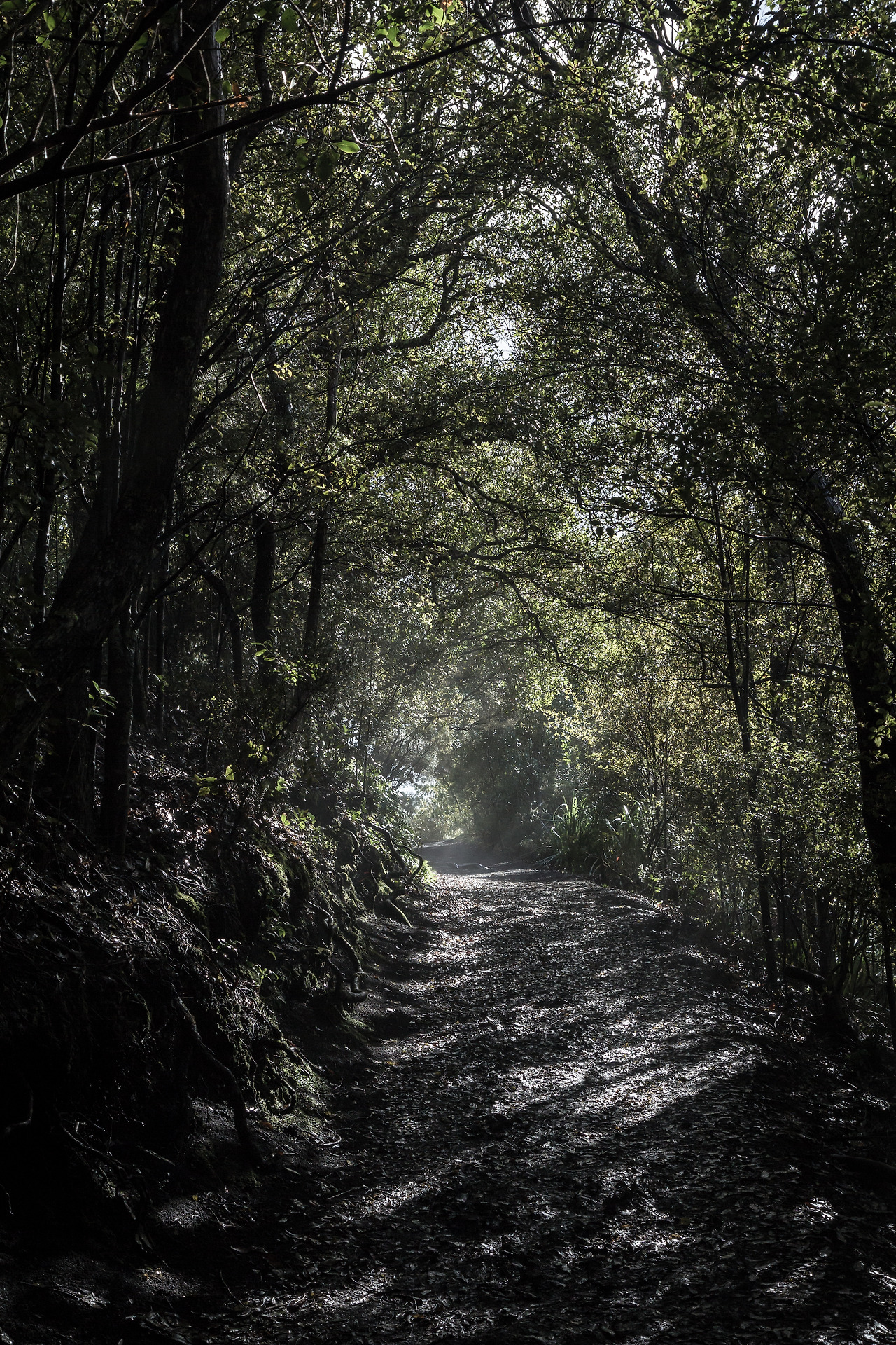 정상에 다다르기 한 10~15분 전쯤 촬영한 모습이다. 비 맞은 나무가 흩뿌리는 빗물이 굉장한 분위기를 연출한다.