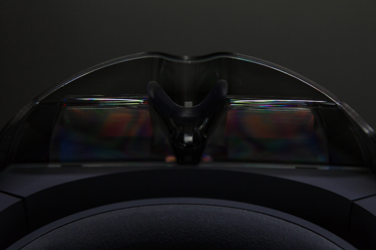 정말 고글같이 생긴 외부 글라스(이지만 플라스틱) 내로 홀로그램 평판 디스플레이가 몇 중으로 위치해있다. 처음 보는 비주얼에 굉장히 설렌다.