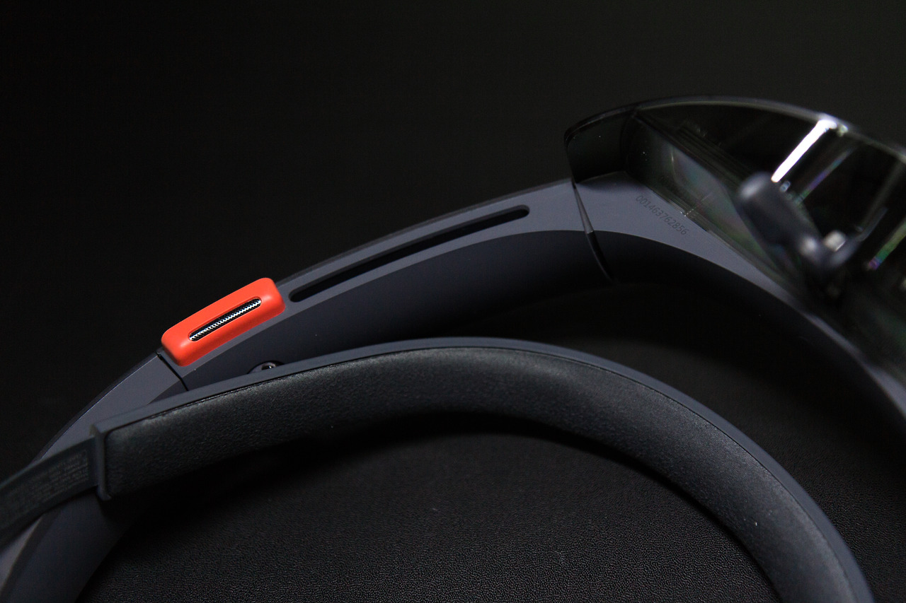 홀로렌즈 중 유일하게 색감이 눈에 띄는 부분이 바로 양쪽 귀 바로 위에 위치한 빌트인 스피커이다. 주홍색.