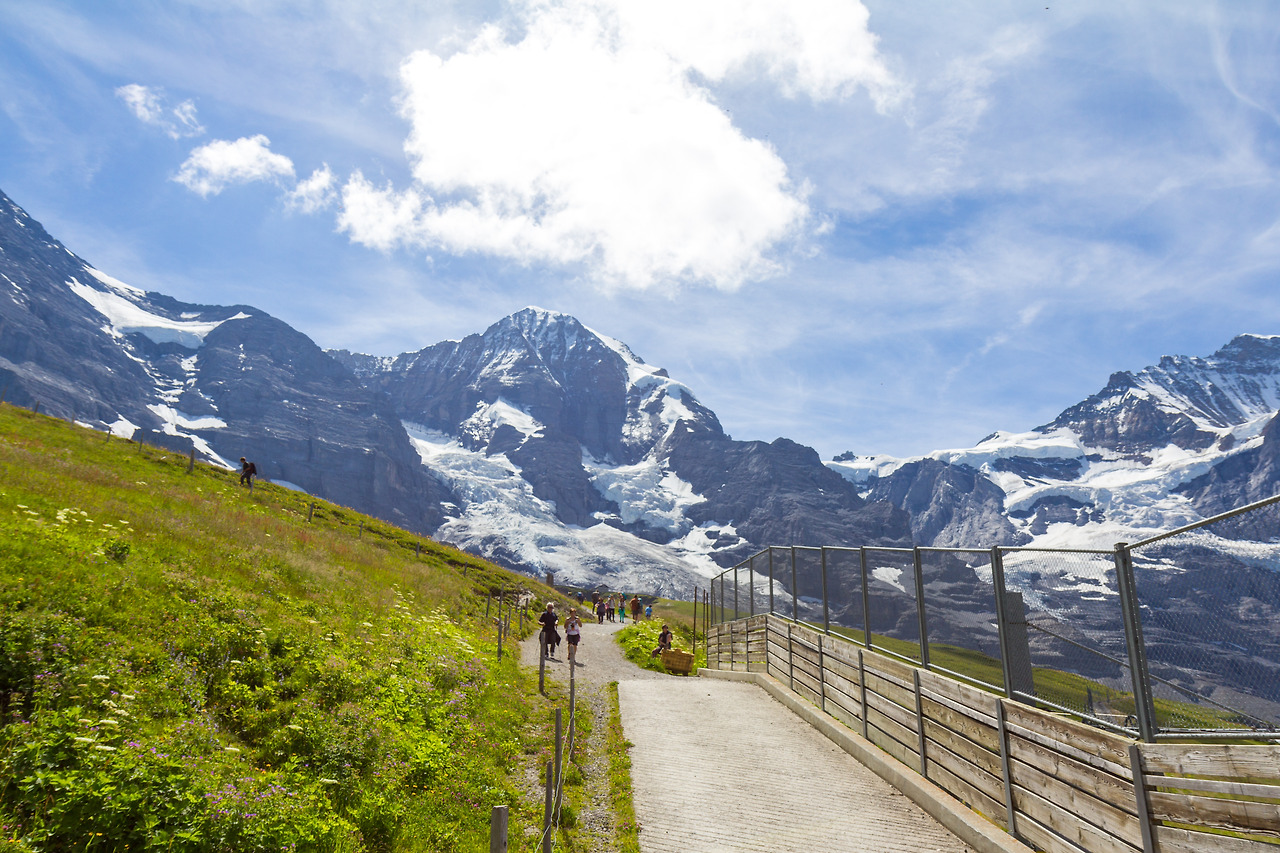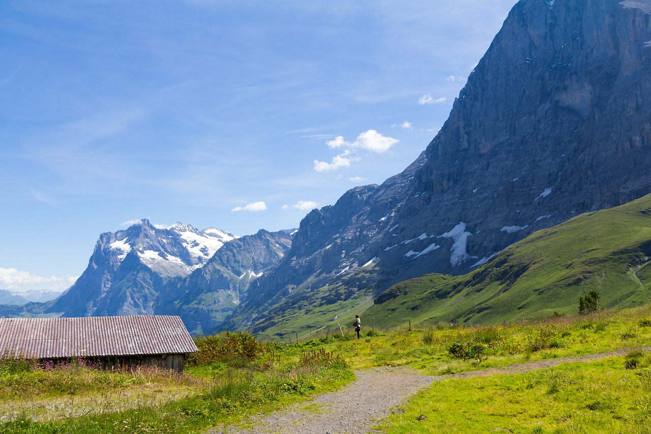 클라이네 샤이덱에 도착했을 때, 날씨는 정말 쾌청했다. 살짝 위로 보이는 알프스와 그린은 "내가 자연 속에 있구나"를 느끼게 하기 충분했다.