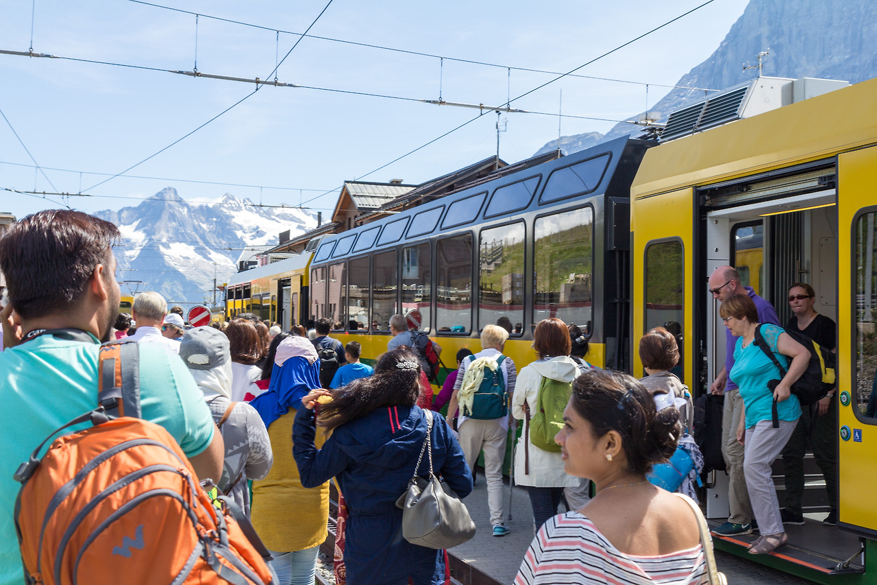 융프라우요흐(Jungfraujoch)로는 인터라켄 동역(Interlaken Ost)에서 라우터브루넨(Lauterbrunnen) 혹은 그린델발트(Grindelwald)로 향할 수 있고, 이 두 역에서 클라이네샤이덱(Kleine Scheidegg)을 거쳐 오를 수 있다.