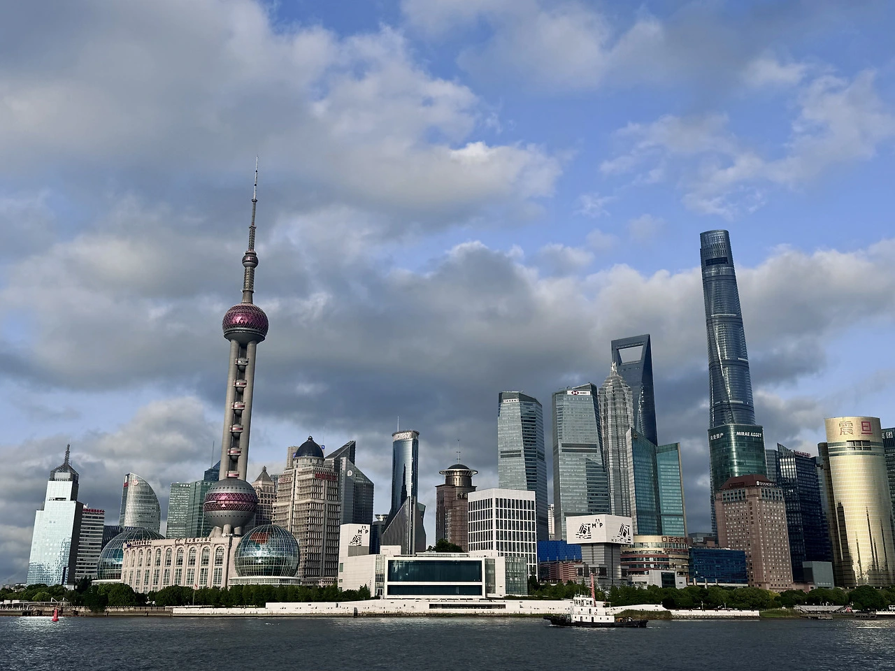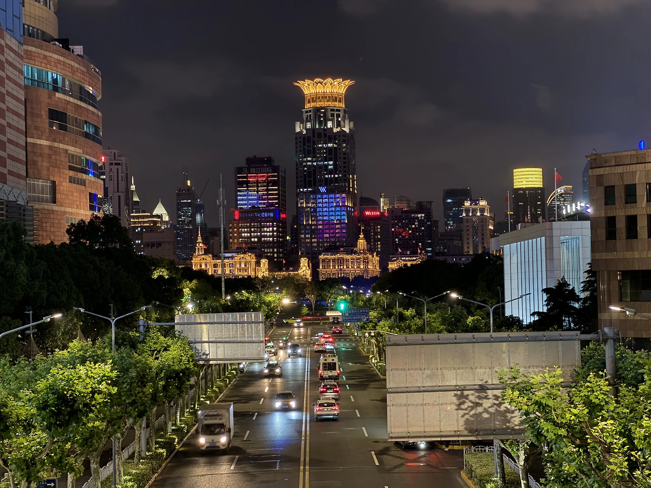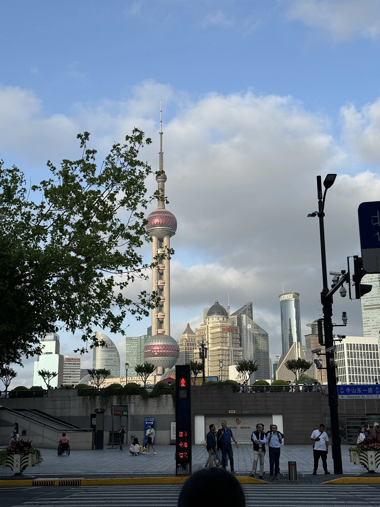 와이탄 거리의 끝에 황푸강이 나오며, 그 물결이 보이기 한참 전에 동방명주가 눈에 들어온다.