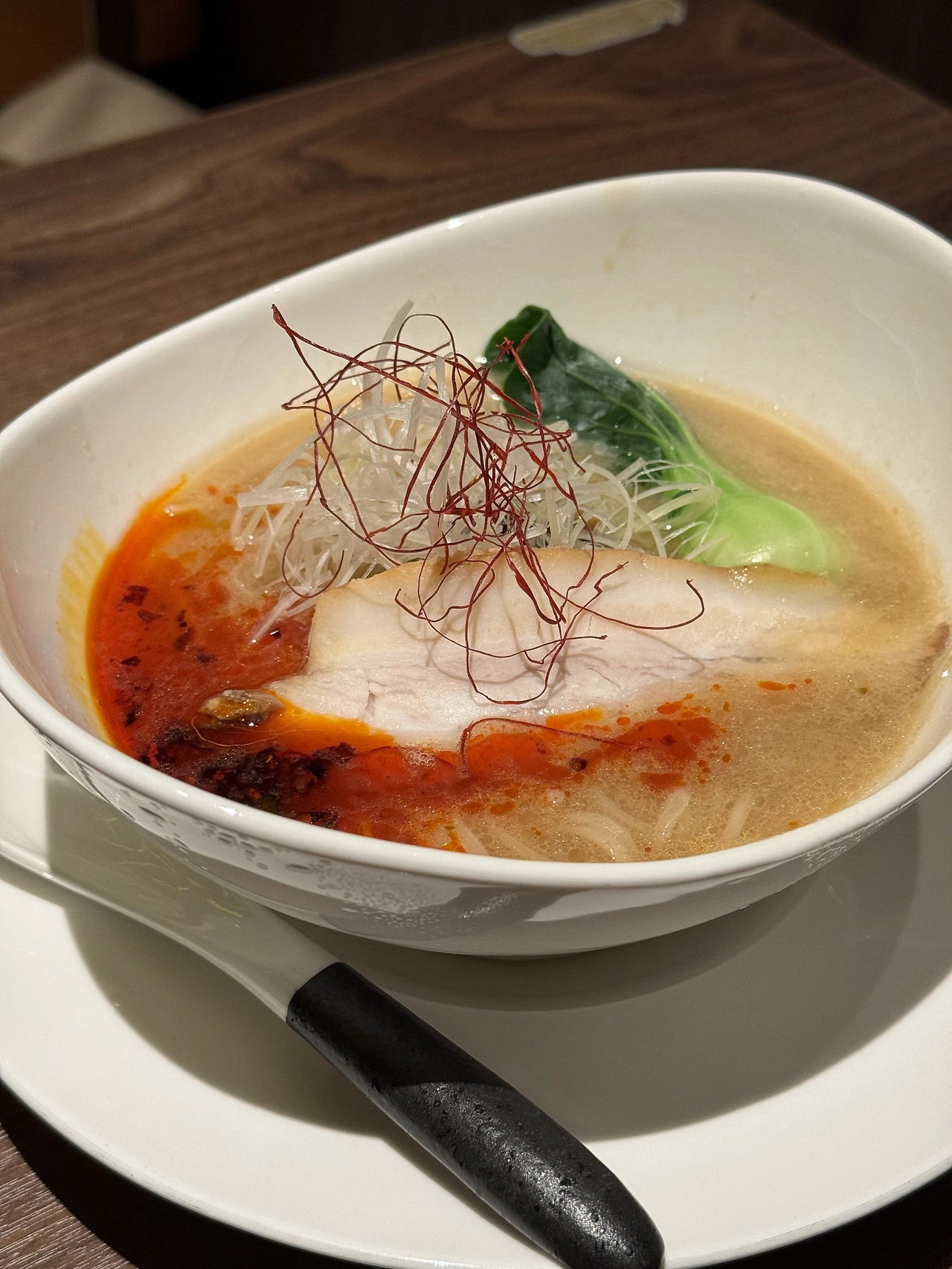 매운 라멘은 중국식으로 해석된 메뉴로, 마라맛이 딱 맛있는 정도로 알싸하게 느껴졌다. 일본식 음식점이라도, 이 메뉴에서만큼은 중국의 감성을 느낄 수 있었다.