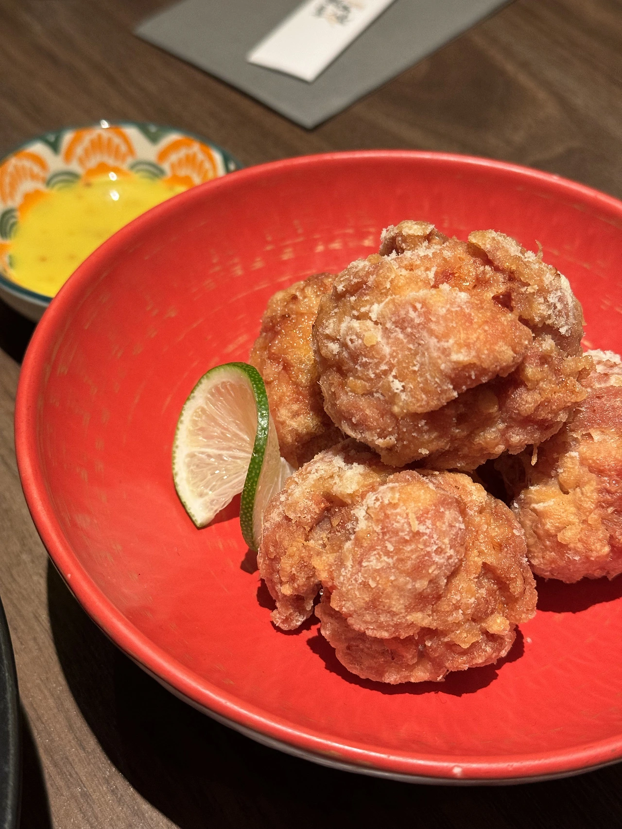 돈코츠 라멘, 매운 라멘, 치킨 가라아게를 사이드로 주문했다.