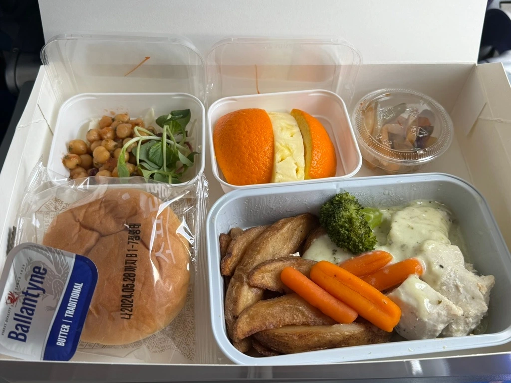 상하이 <> 서울/인천 거리의 비행에서 무슨 기내식이냐, 안 먹겠다 싶었지만 짝꿍이 대신 받아주었다. 기대를 아예 안 하고 어찌어찌 받았더니 그래도 먹을 만은 하더라. 닭가슴살에서 약간의 닭 비린내가 났지만, 이 정도면 그래도 괜찮았다.