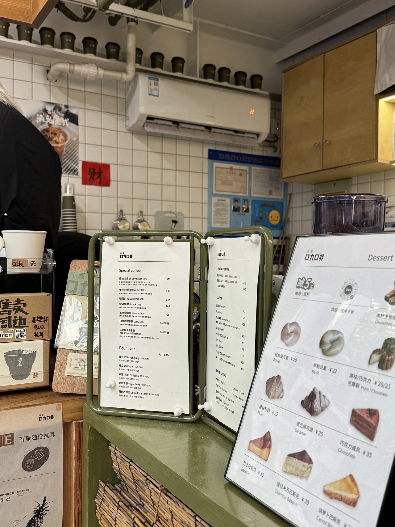 호텔에 체크인을 하고 바로 짝꿍이 상하이에서 같이 공부하던 친구를 만나러 같이 나왔다. 카페에서 보자고 한 상하이 친구, ㅇ님. 저녁에는 바로 운영하는 매장이었는데, 이때까진 몰랐다. 여기가 상하이에서 먹은 모든 커피 중 가장 커피다운 맛이었다는 것을. 상하이 시민의 맛집인가, 정말 이렇게 작은 매장을 여행객 신분으로는 알 도리가 없다. (난 이런 걸 좋아하지만 ㅋㅋㅋ)