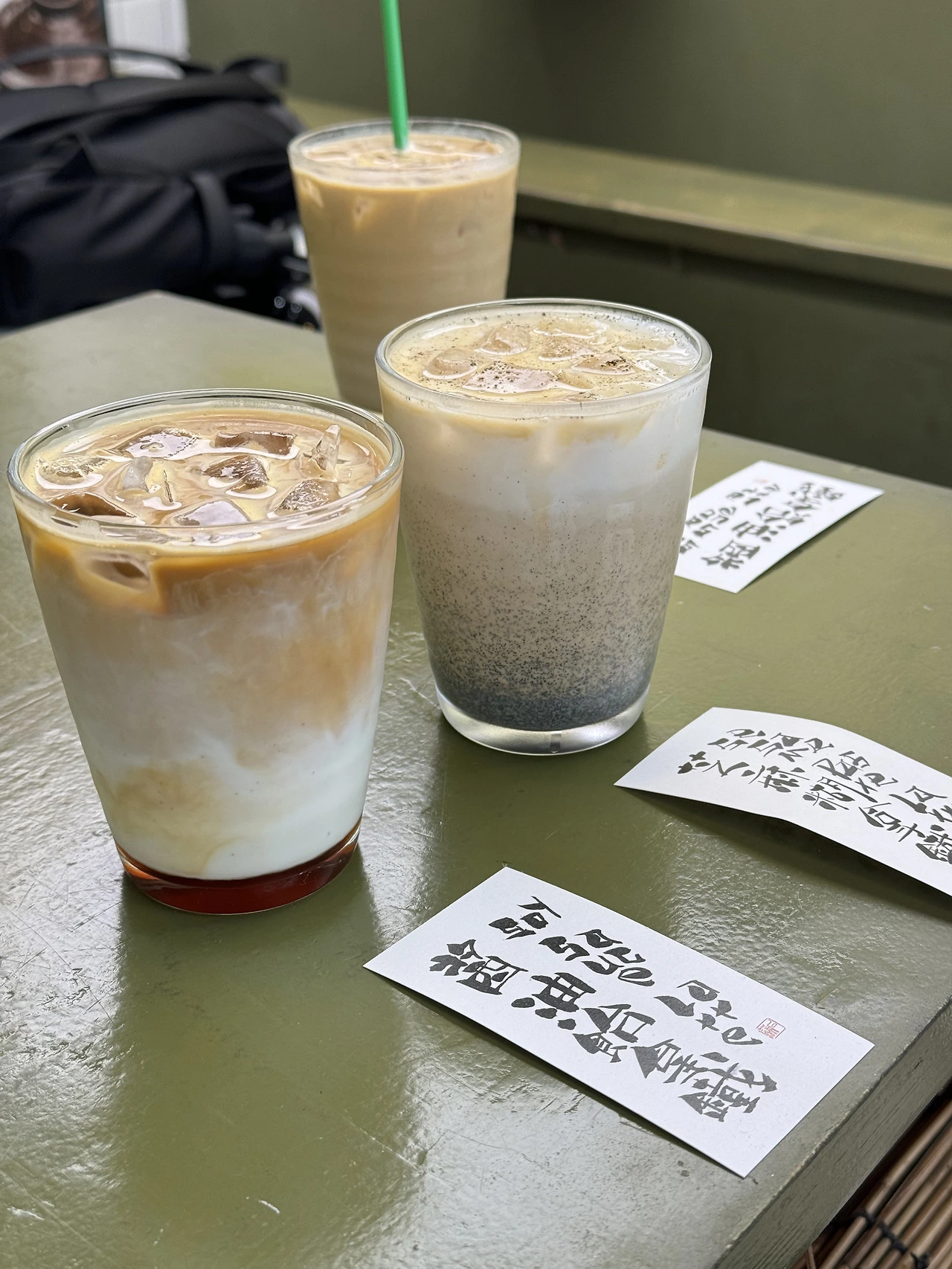 시그니처 메뉴인 간장라떼를 시켜보았다. 평범한 건 굳이? 과하게 짭짤하지 않았고, 에스프레소의 향은 진하게 남아있었고. 나쁘진 않았다. 하지만, 흑임자라떼가 더 맛있었다.