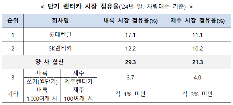 공정위, 롯데렌탈-SK렌터카 기업결합신고 불허