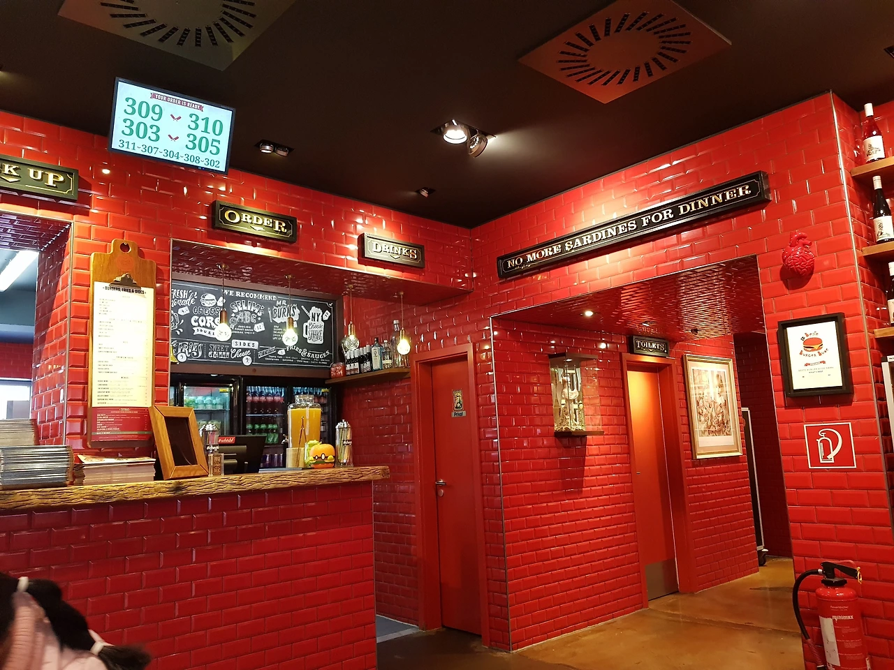 다미는 붉은 벽돌 인테리어가 굉장히 인상 깊은 레스토랑에 조심조심 들어갔다. 인기척을 느낀 카운터에서 시크한 인상의 주인이 'Hallo' 라 인사를 건넨다. 다미도 살짝 눈인사를 건네고 ORDER라고 적힌 곳에서 메뉴를 차근차근 훑어봤다. 메뉴판에 독일어와 영어가 같이 적혀 있어서 메뉴를 고르는데 별다른 어려움은 없었다. 다미는 가장 기본인 햄버거만 단품으로 주문한 뒤 방금 자신이 서 있었던 곳을 카메라에 담는다. 붉은 별돌에 붉은 소화기, 붉은 문 모든 곳이 새빨간 레스토랑을 감탄하며 둘러보기 시작한다.