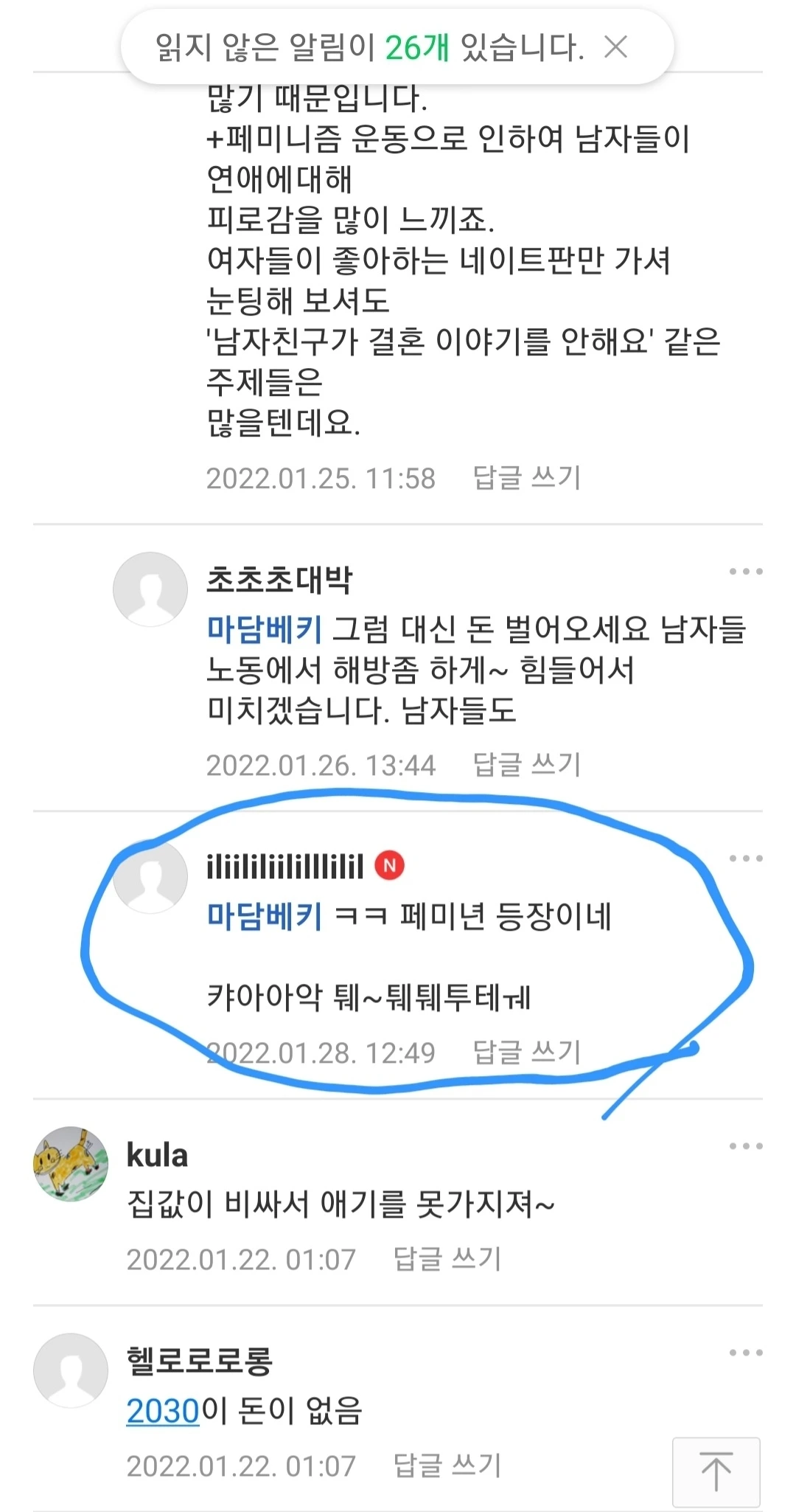 "ㅋㅋ페미년 등장이네