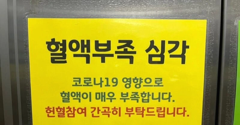 코로나19 때문에 사람들이 헌혈을 소극적으로 하게 되었던지라