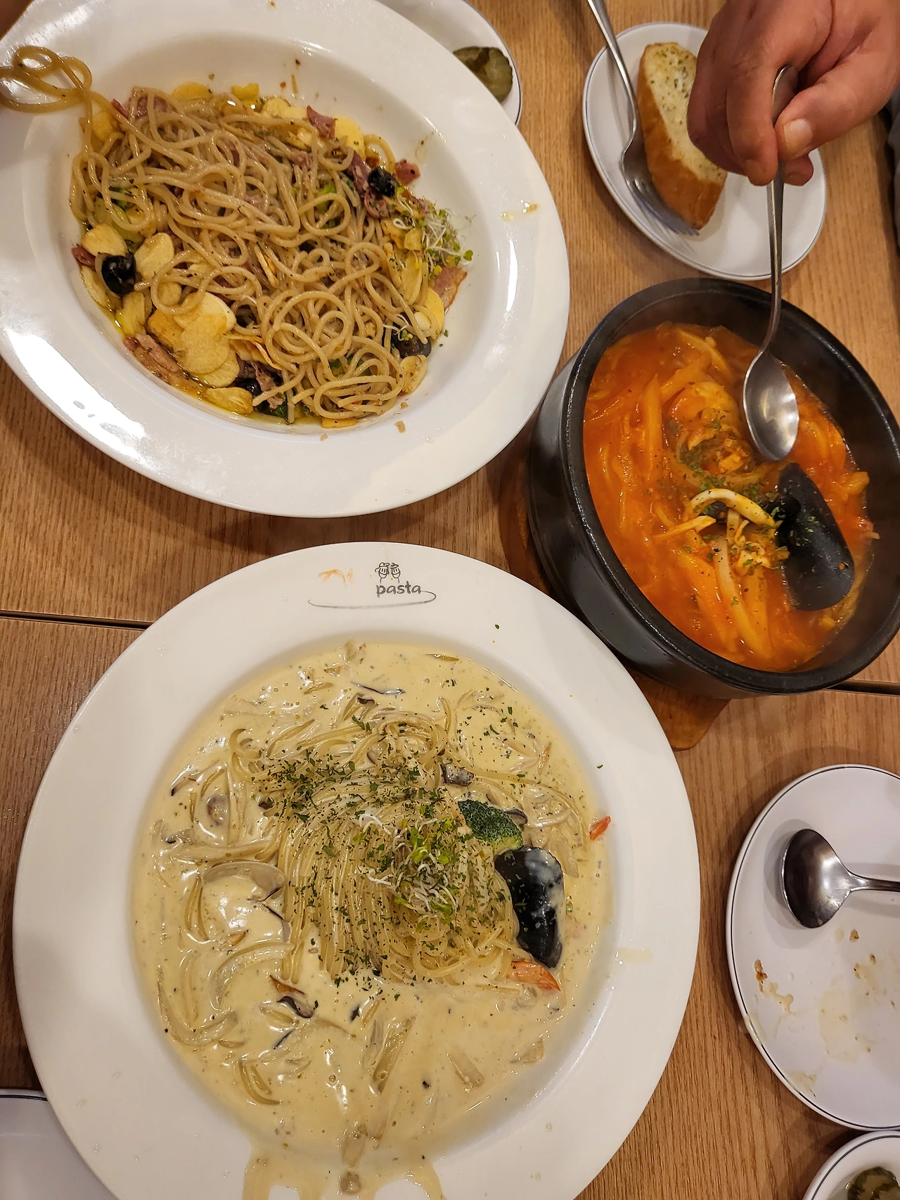 며칠전에 가족외식한 파스타집에서 찰칵오늘은 정확히 6시 50분에 일어났다. 화장실에 다녀와서 미지근한 물을 한잔 마셨다.