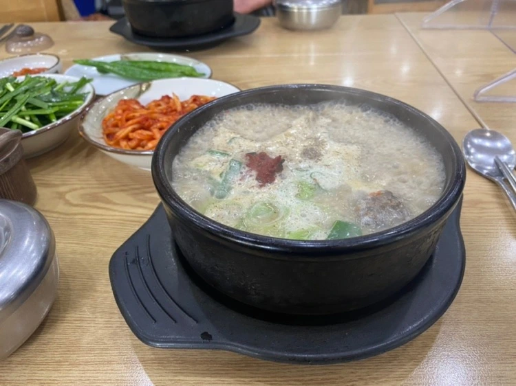 남편에게 저녁에 그 순댓국집에서 만나자고 하고 집을 나섰다. 먼저 온 남편은 내가 도착할 때에 맞춰 시켜뒀다고 했다. 앉자마자 펄펄 끓는 뚝배기가 나왔다.